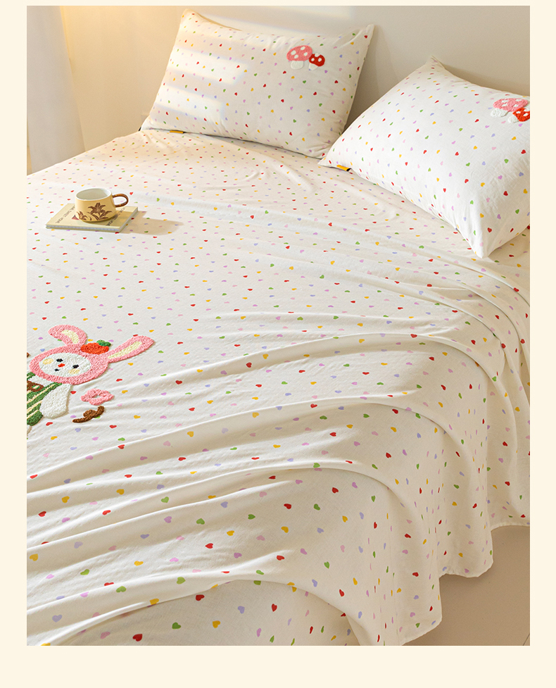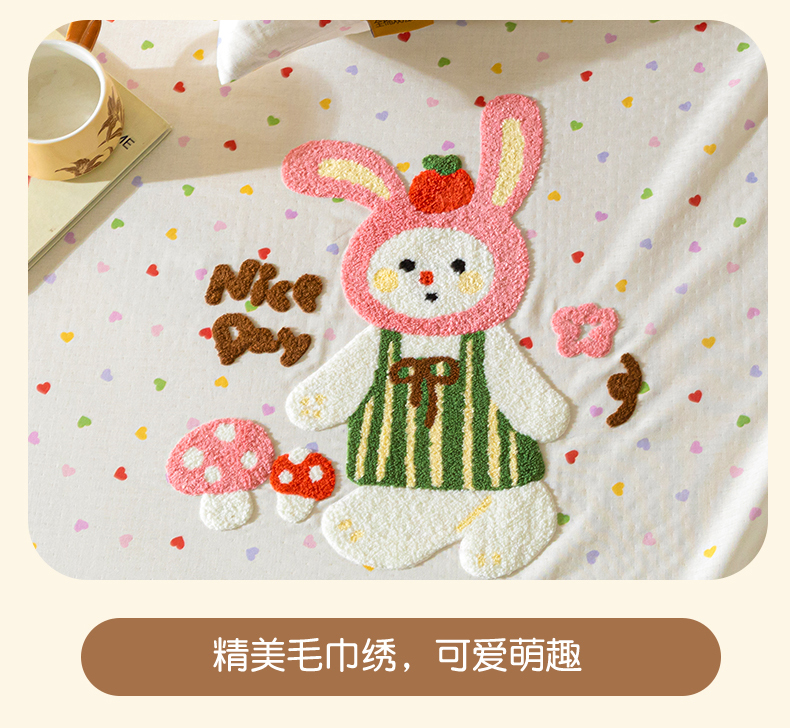 商品名称:居眠 2025新款全棉纯棉云感皱皱纱毛巾绣床单 兔兔小姐