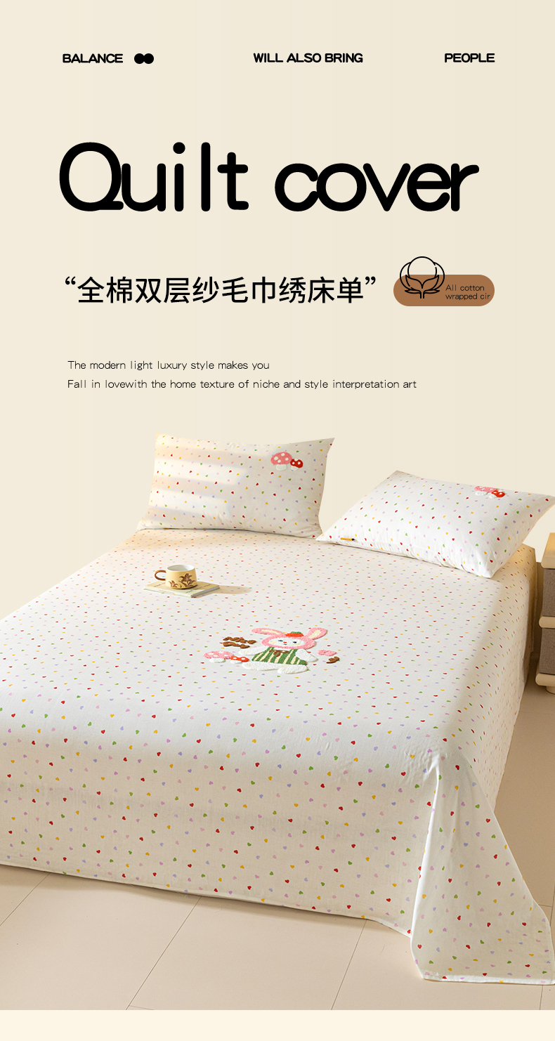 居眠 2025新款全棉纯棉云感皱皱纱毛巾绣床单 兔兔小姐