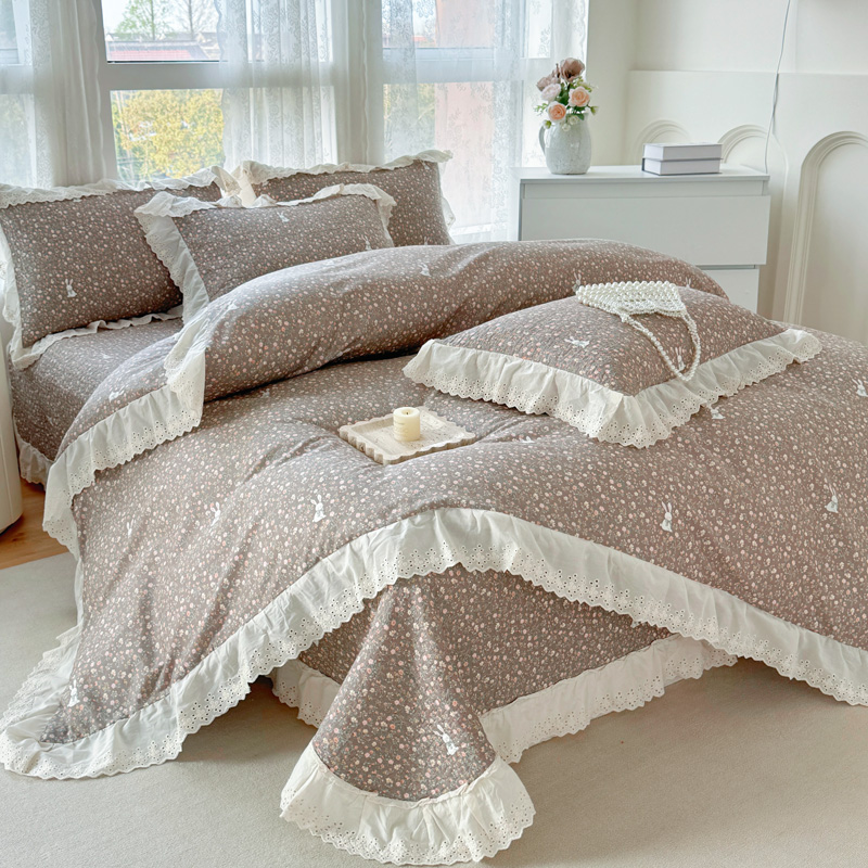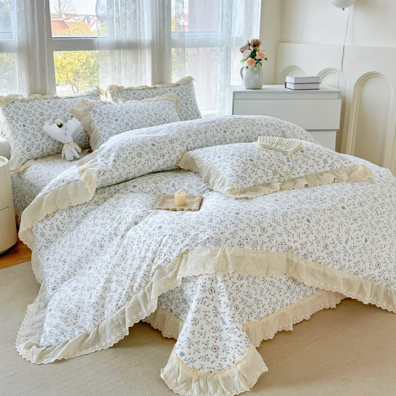 添越 2024小清新韩版蕾丝款花边纯棉夹棉床盖三件套全棉爱意时光蕾丝款,爱意时光蕾丝款