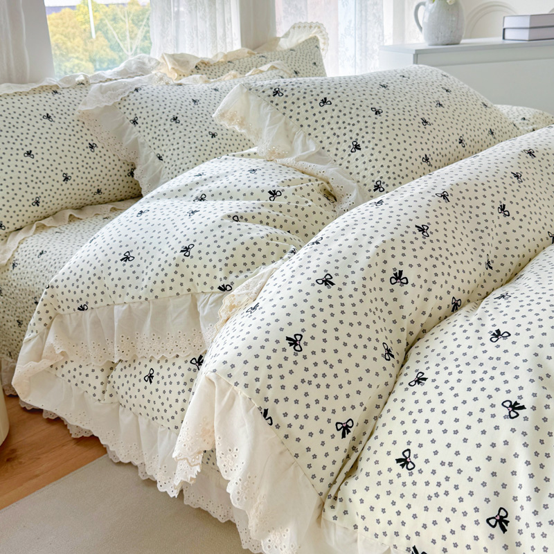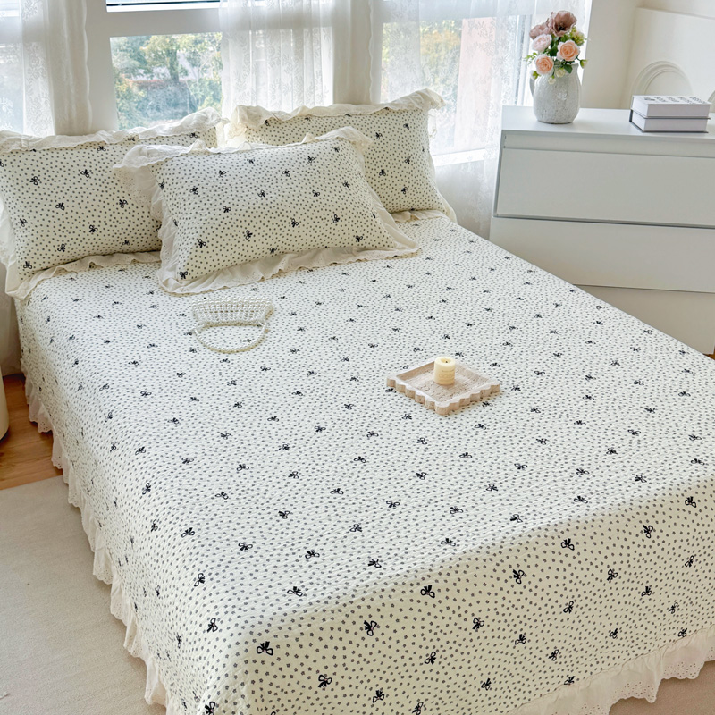 添越 2024小清新韩版蕾丝款花边纯棉夹棉床盖三件套全棉爱心熊-蕾丝款,爱心熊-蕾丝款