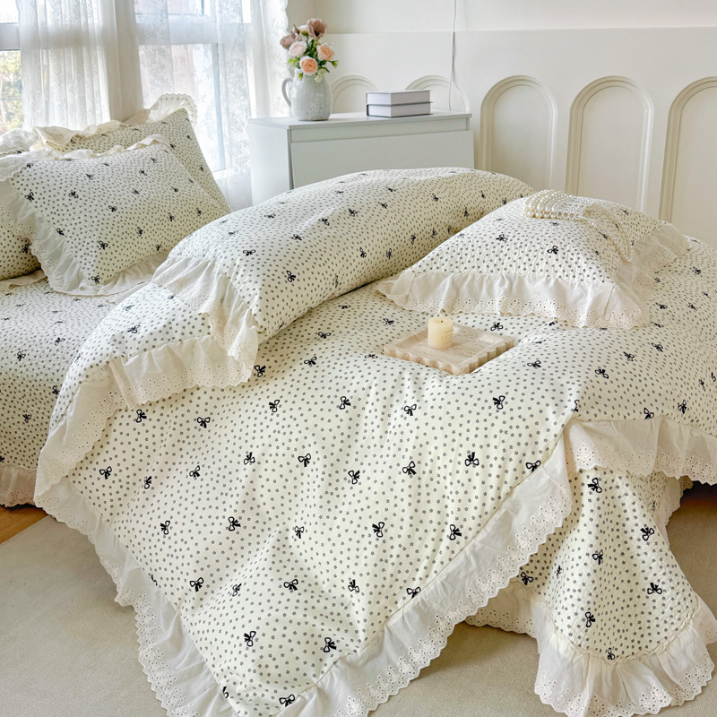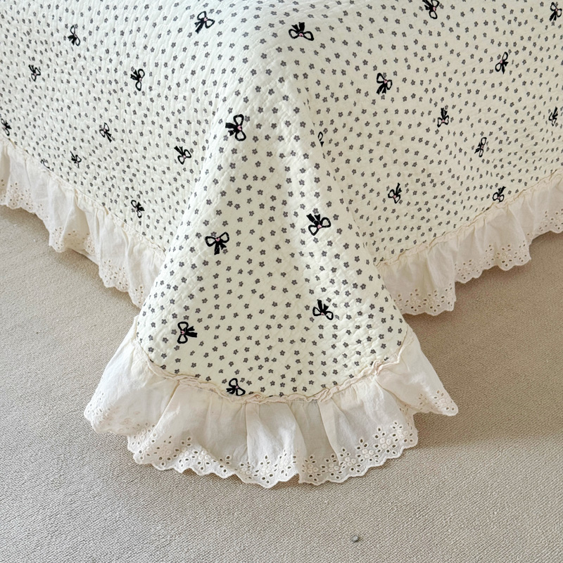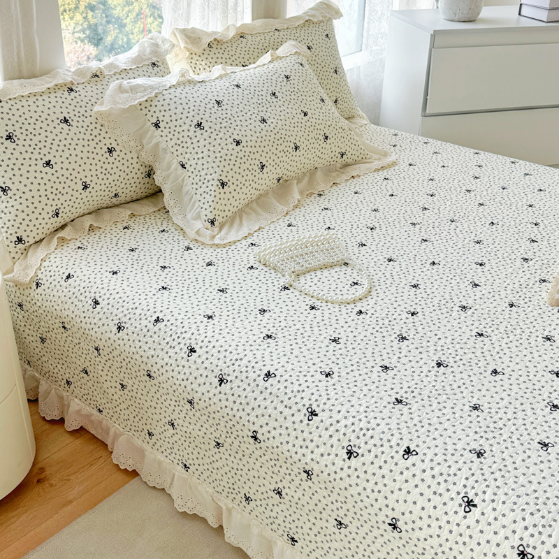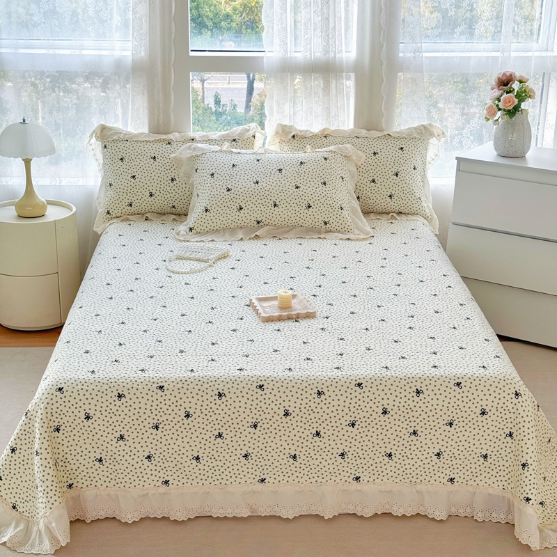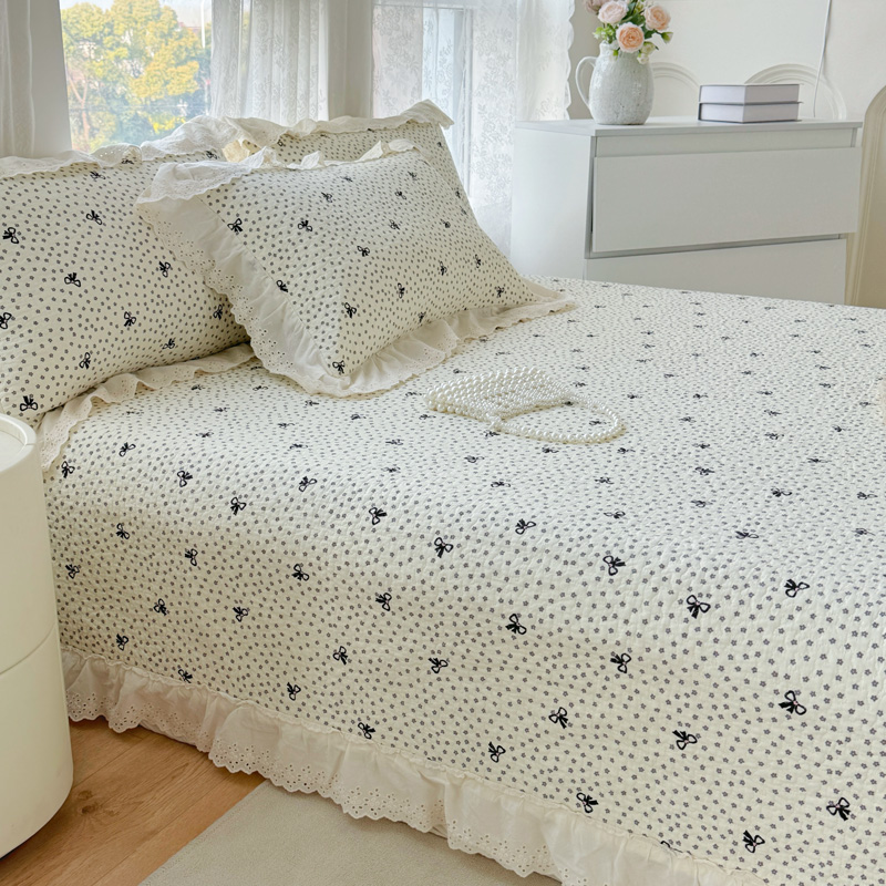 添越 2024小清新韩版蕾丝款花边纯棉夹棉床盖三件套全棉爱意时光蕾丝款,爱意时光蕾丝款