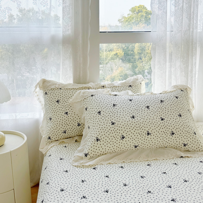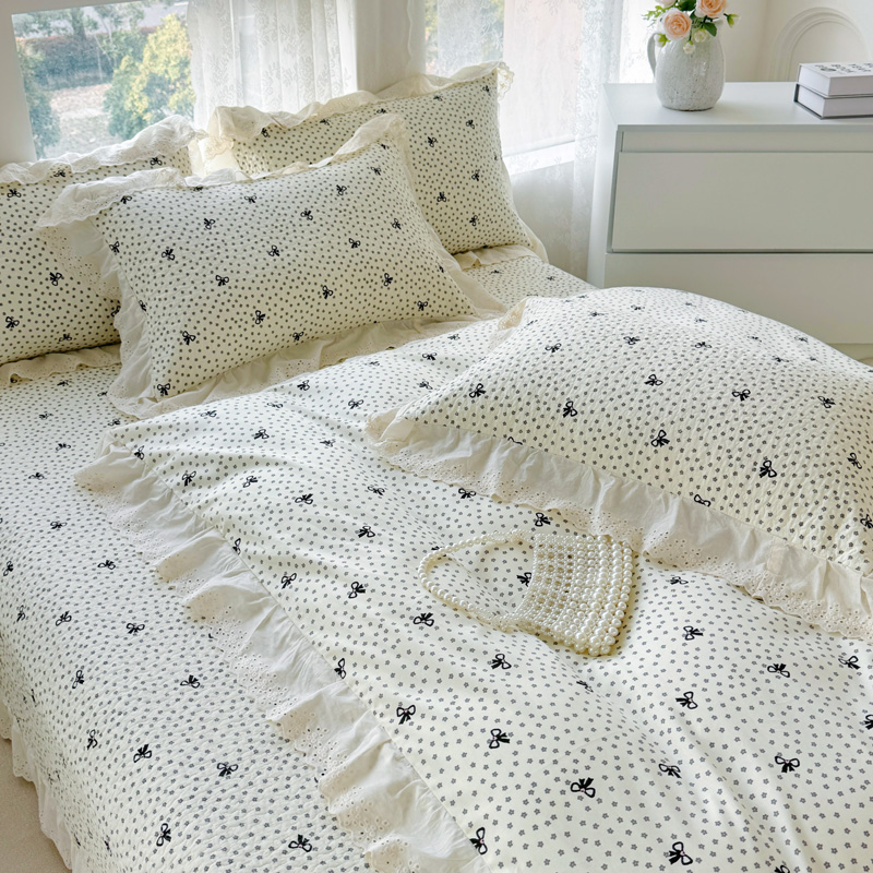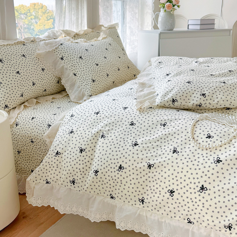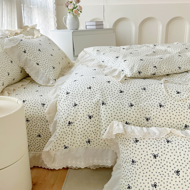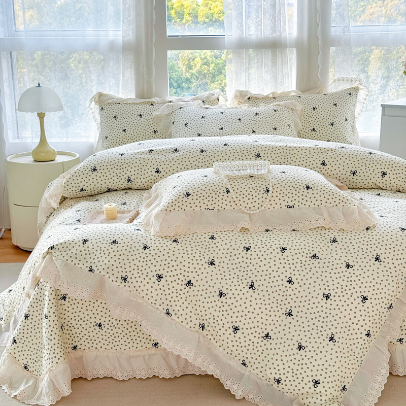 添越 2024小清新韩版蕾丝款花边纯棉夹棉床盖三件套全棉爱意时光蕾丝款,爱意时光蕾丝款