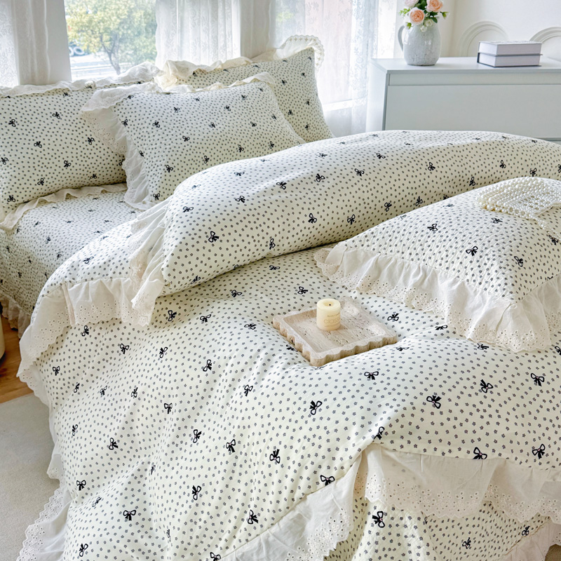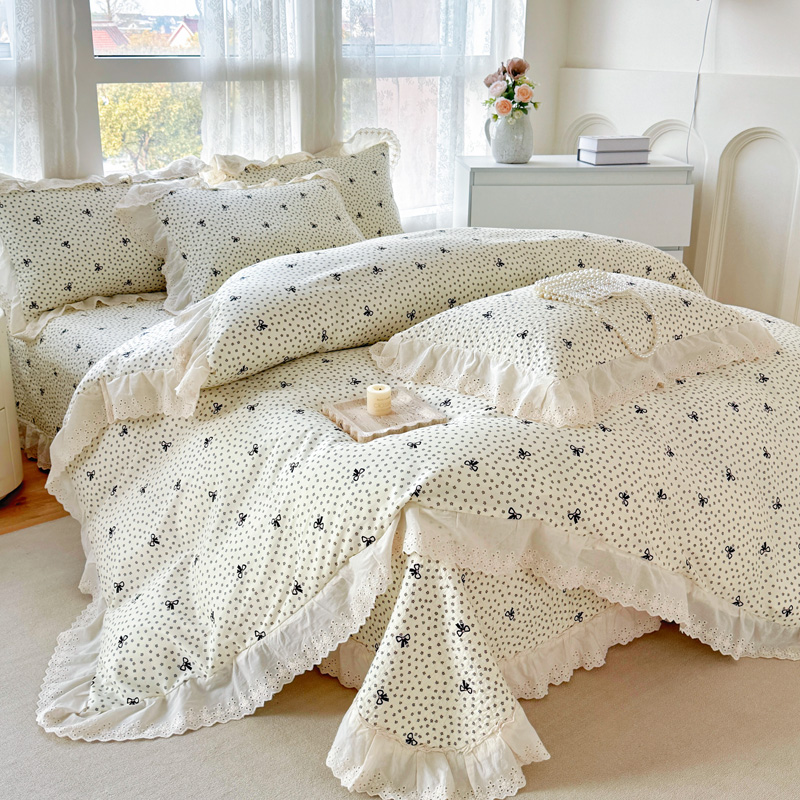 (总)添越 2024新款雪纺蕾丝款纯棉床盖四件套,蝴蝶结,怦然心动-粉,怦然心动-兰,白色蝴蝶结,粉色蝴蝶结,小彩虹,比心,葡萄仙子