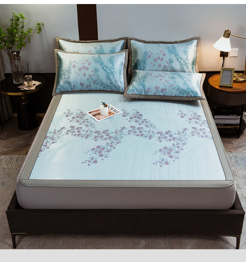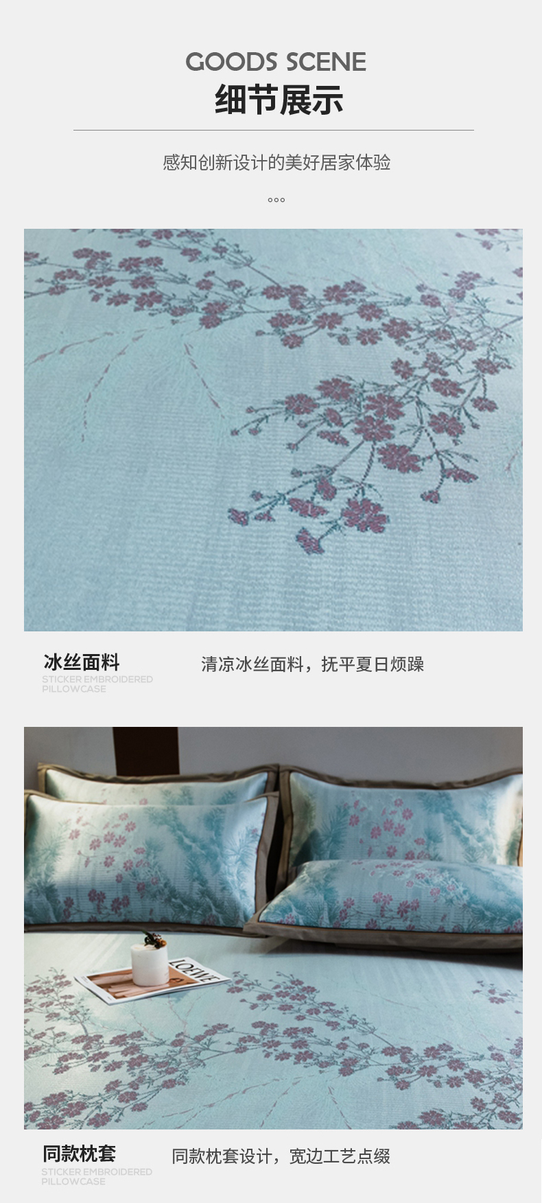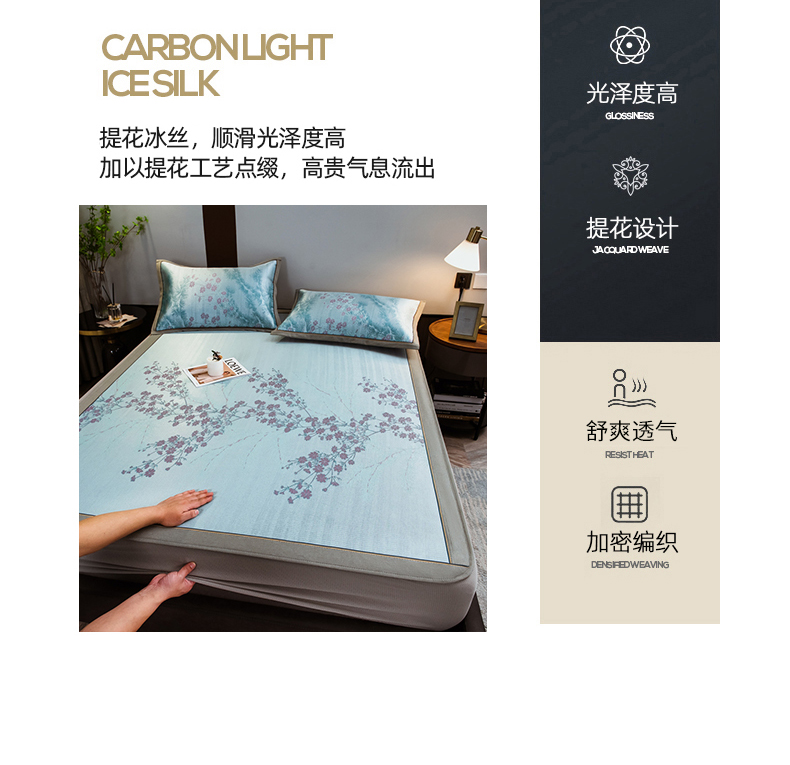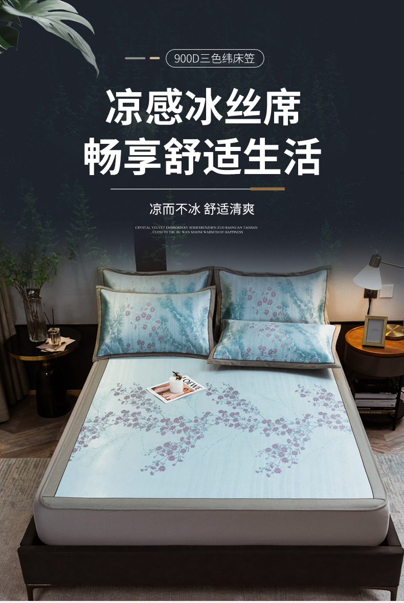 商品名称:全季家居 2025新款900D高精密三色纬提花冰丝凉席 床笠-枝头梅花