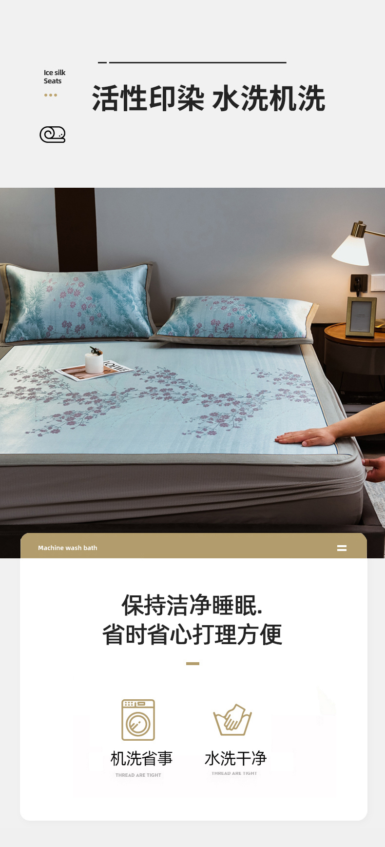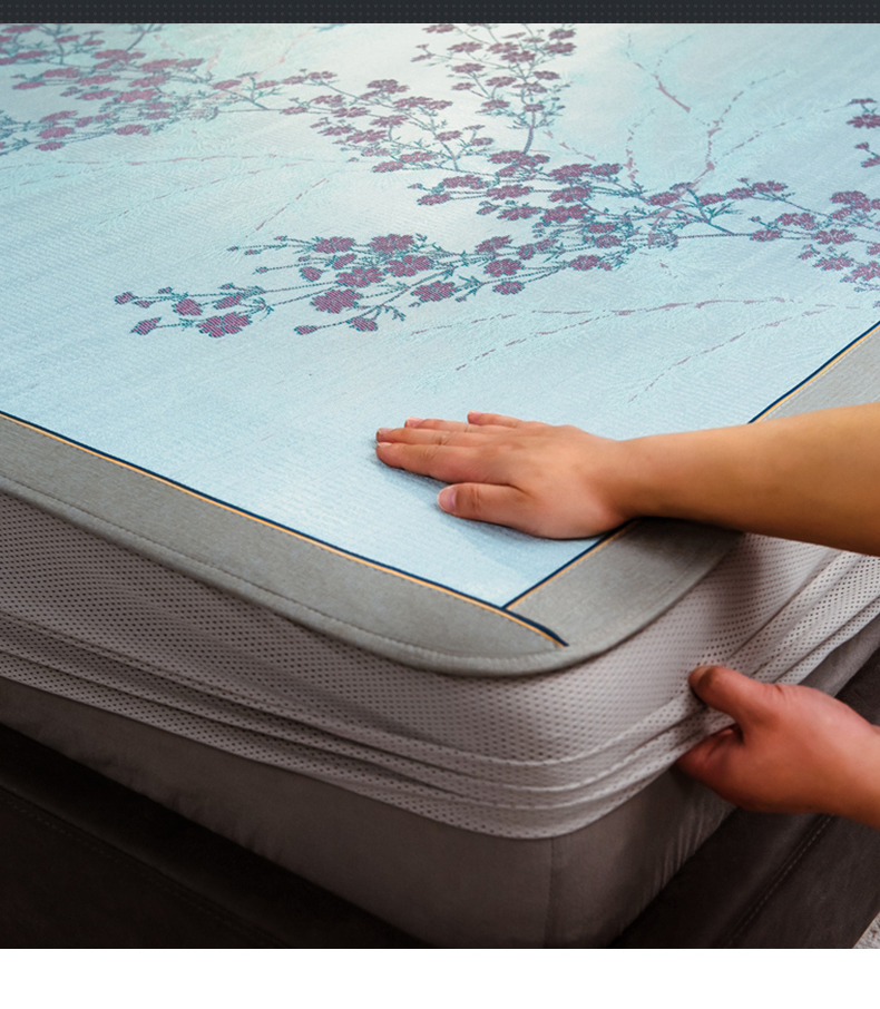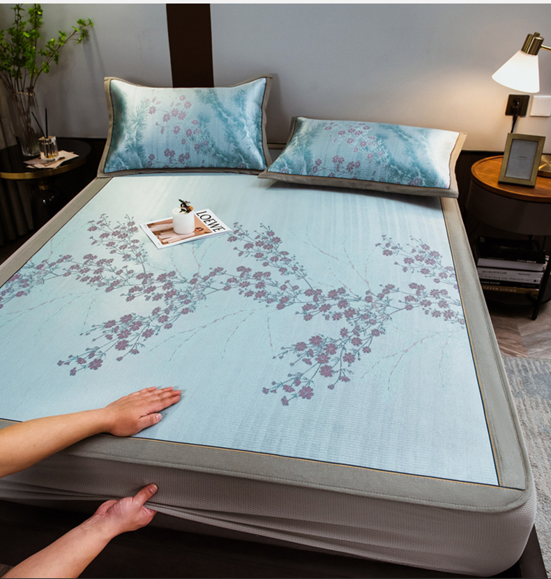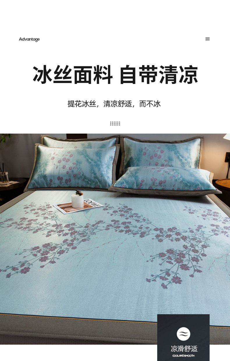 商品名称:全季家居 2025新款900D高精密三色纬提花冰丝凉席 床笠-枝头梅花