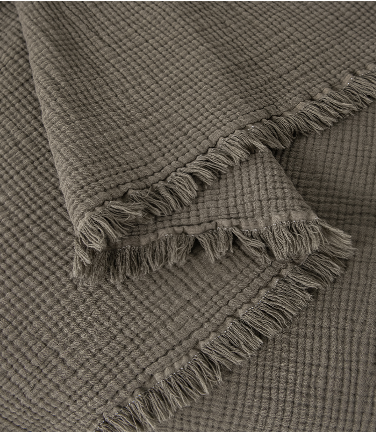 皇寝世家家居 2025新款A类全棉针织四层纱苏流毯子沙发盖毯 午睡复古毛毯 静谧-海松色