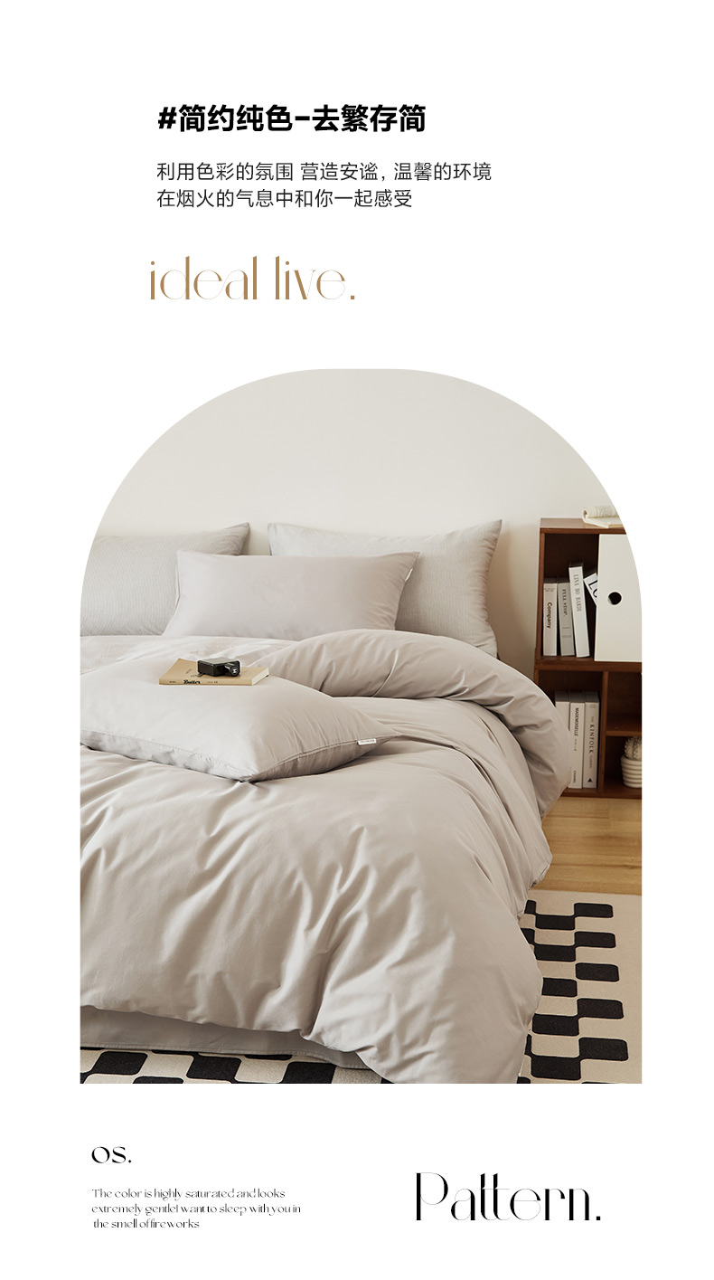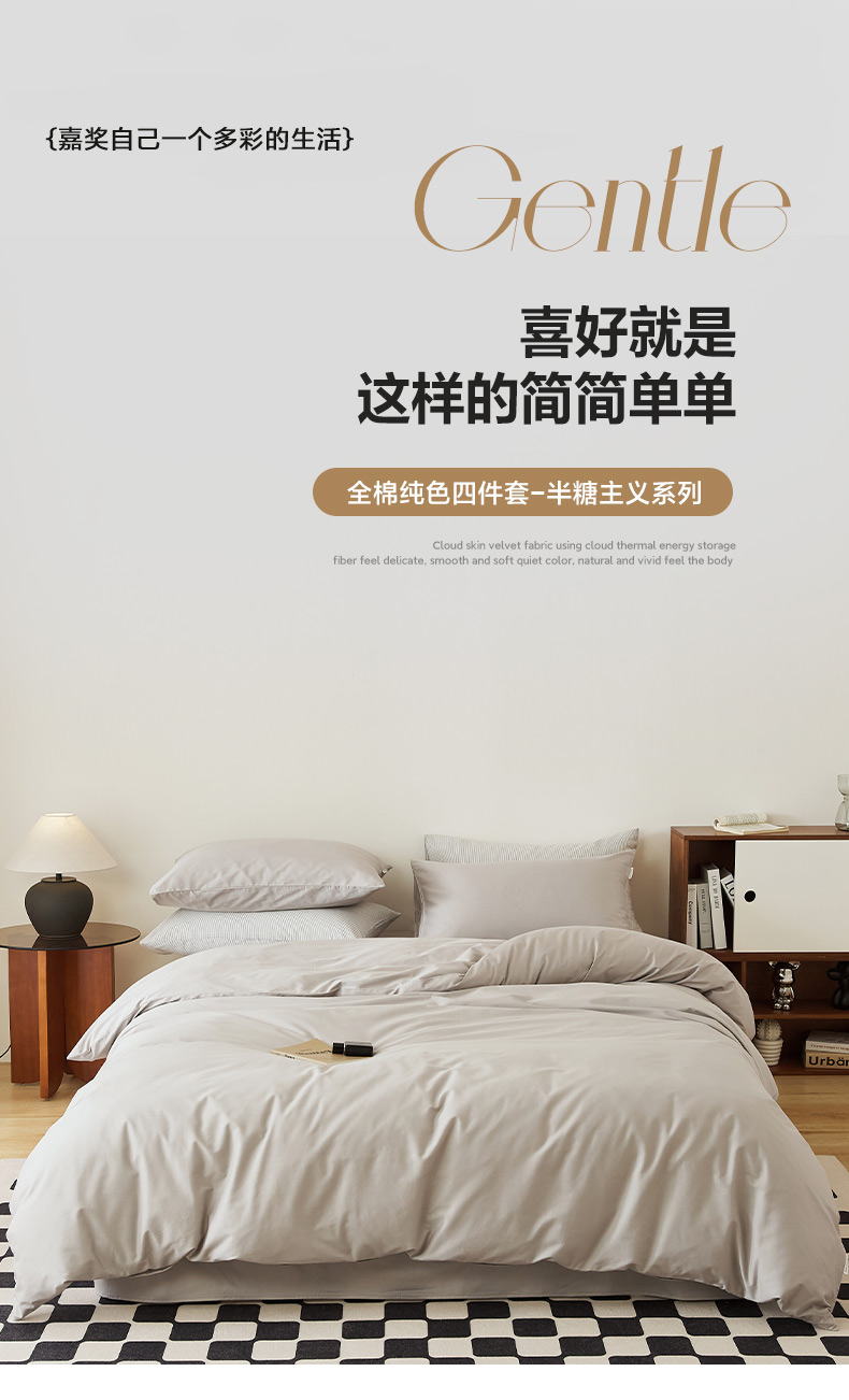 当前位置: 91家纺网 > 商品网购 > 床品套件 > 四件套 > 全棉普通四件套 > EH家居 2025新款春夏40支全棉斜纹四件套-半糖主义系列 半糖-浅灰