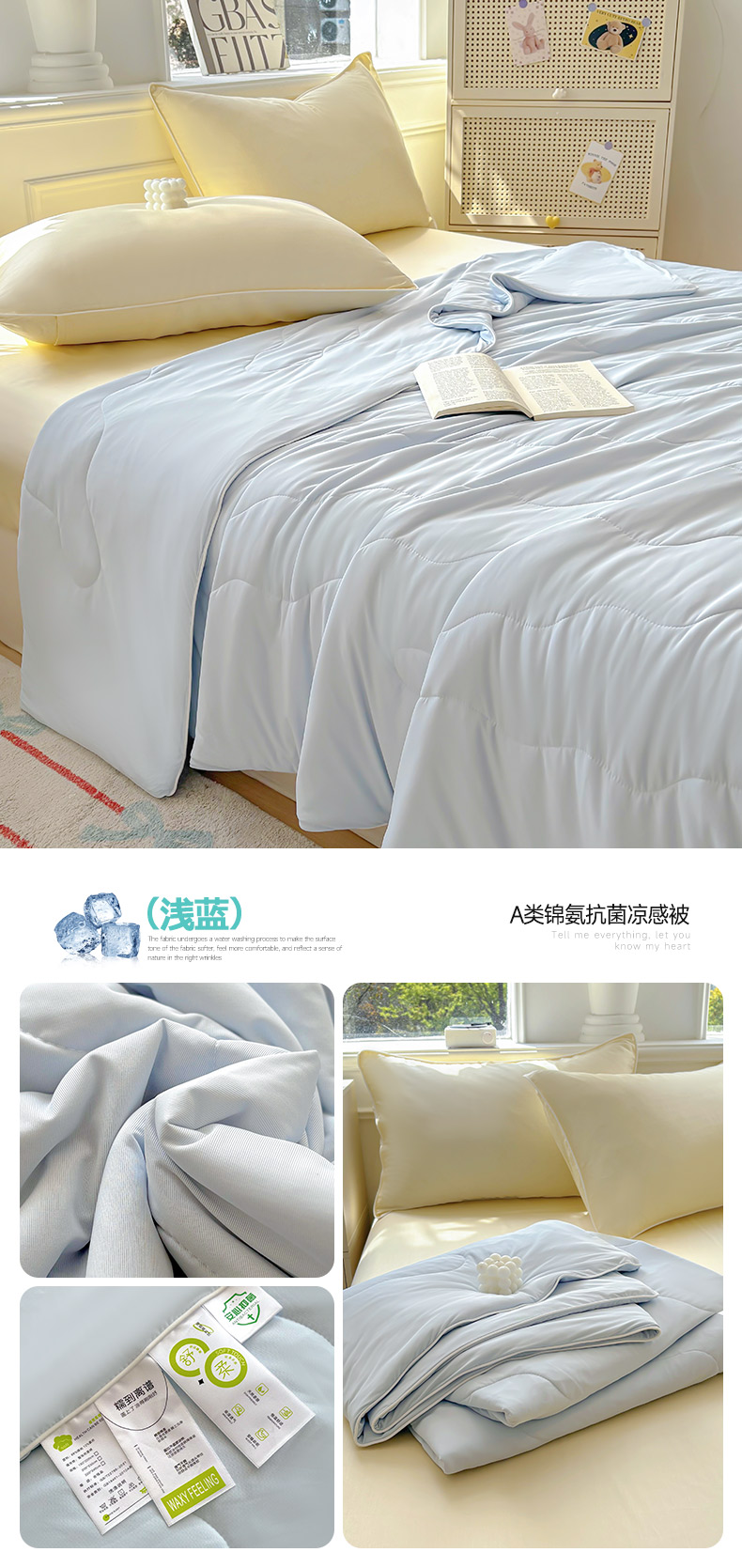 商品名称:百寐 2025新款A类160克88%锦纶+12%氨纶锦氨夏被纯色夏凉被空调被 浅蓝