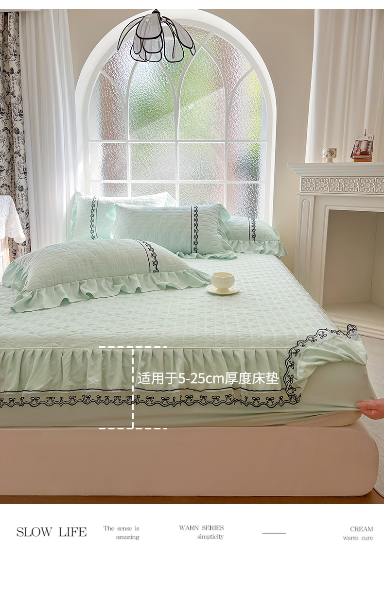 麒豆豆 2025新款喜芙棉蕾丝夹棉蜜芙蕾床笠 豆蔻绿