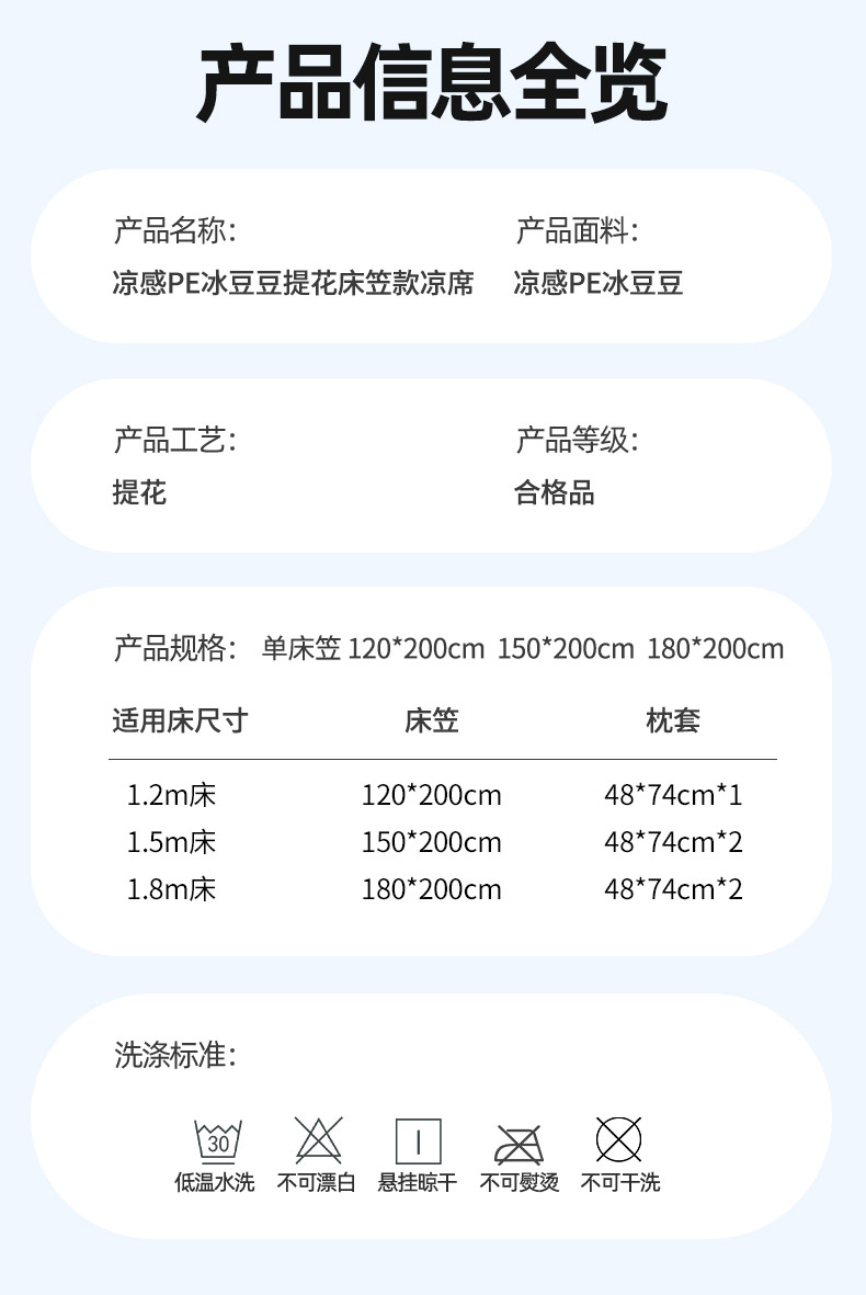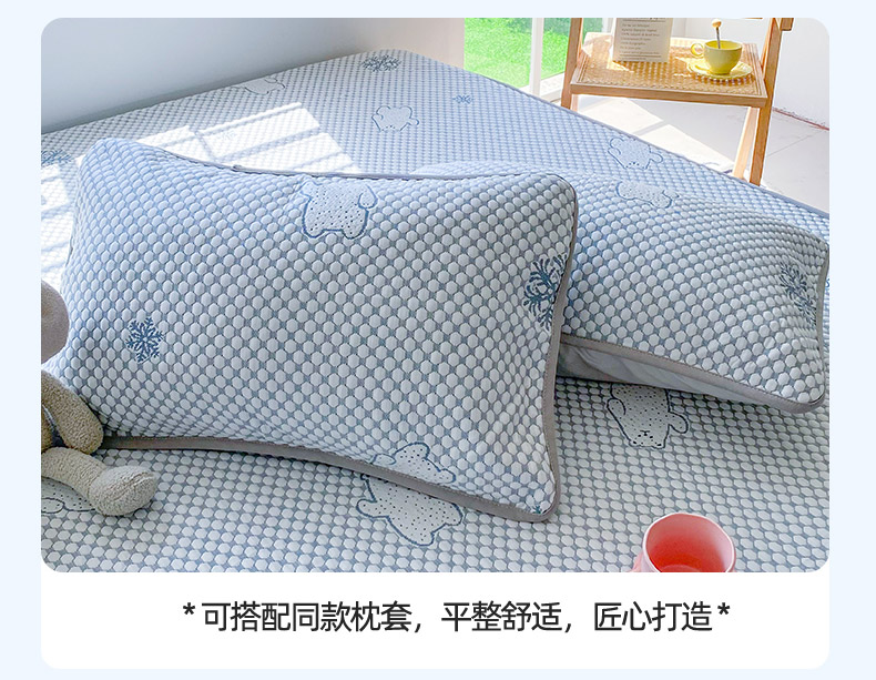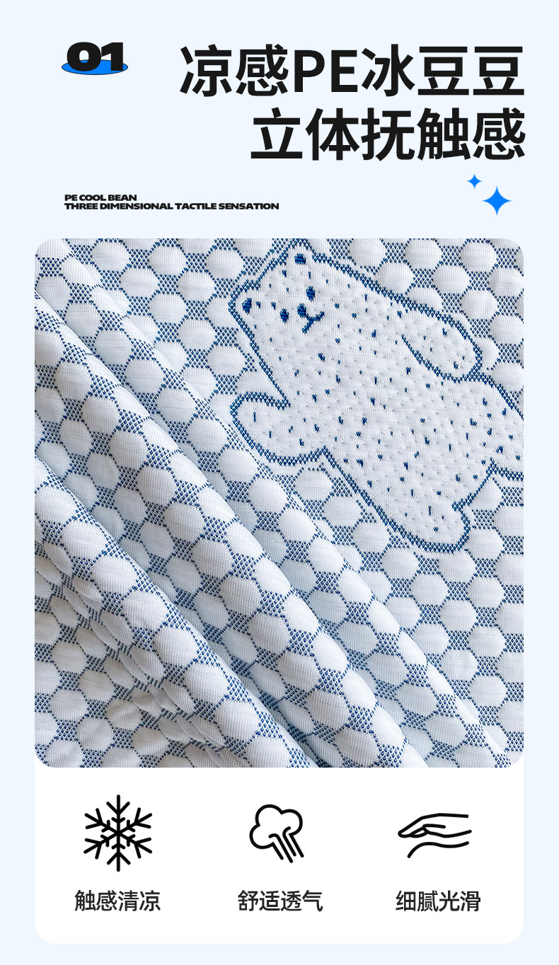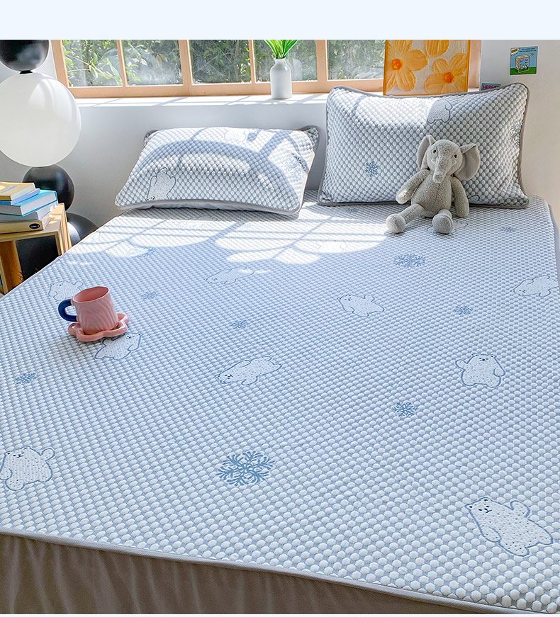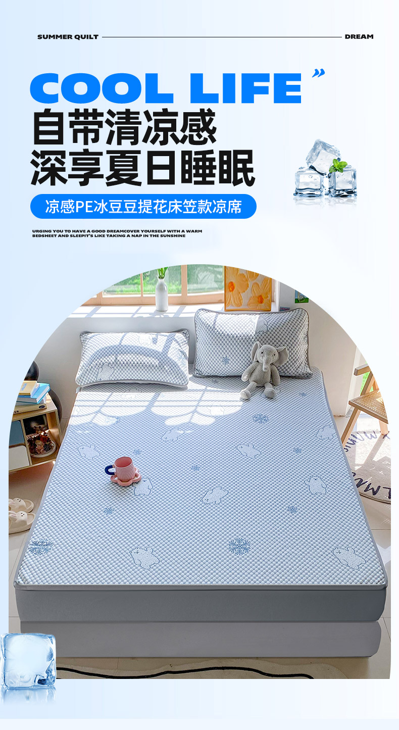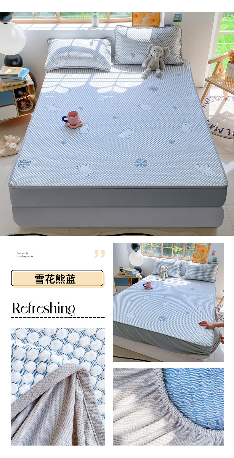 商品名称:千朵 2025新款凉感PE冰豆豆提花床笠款凉席 雪花熊蓝