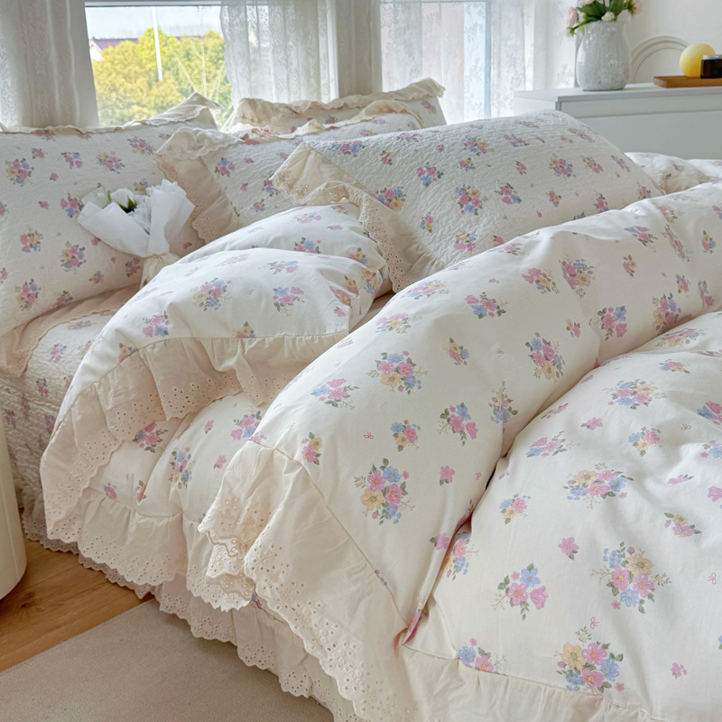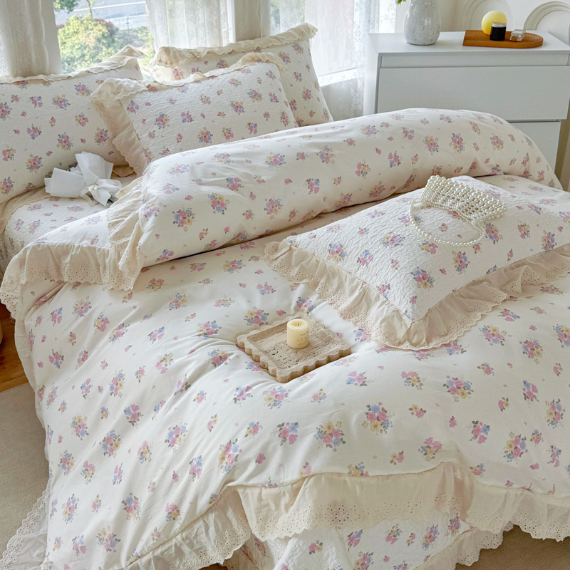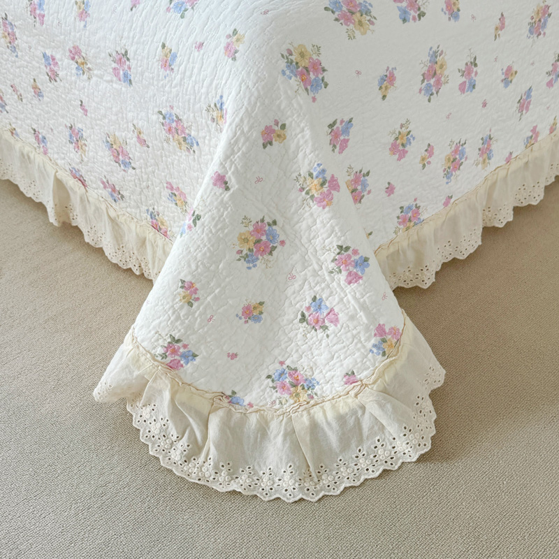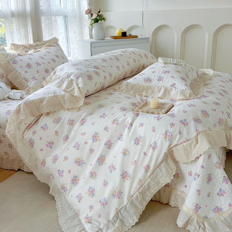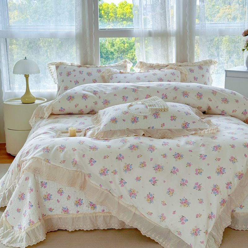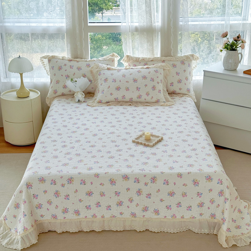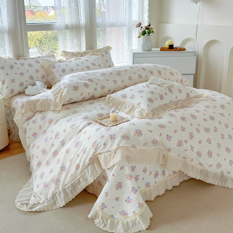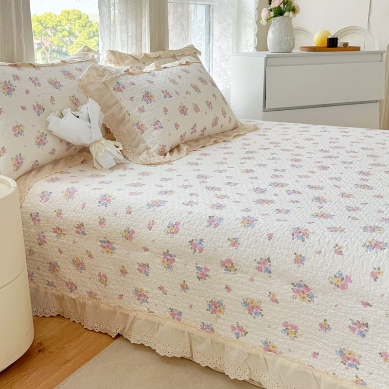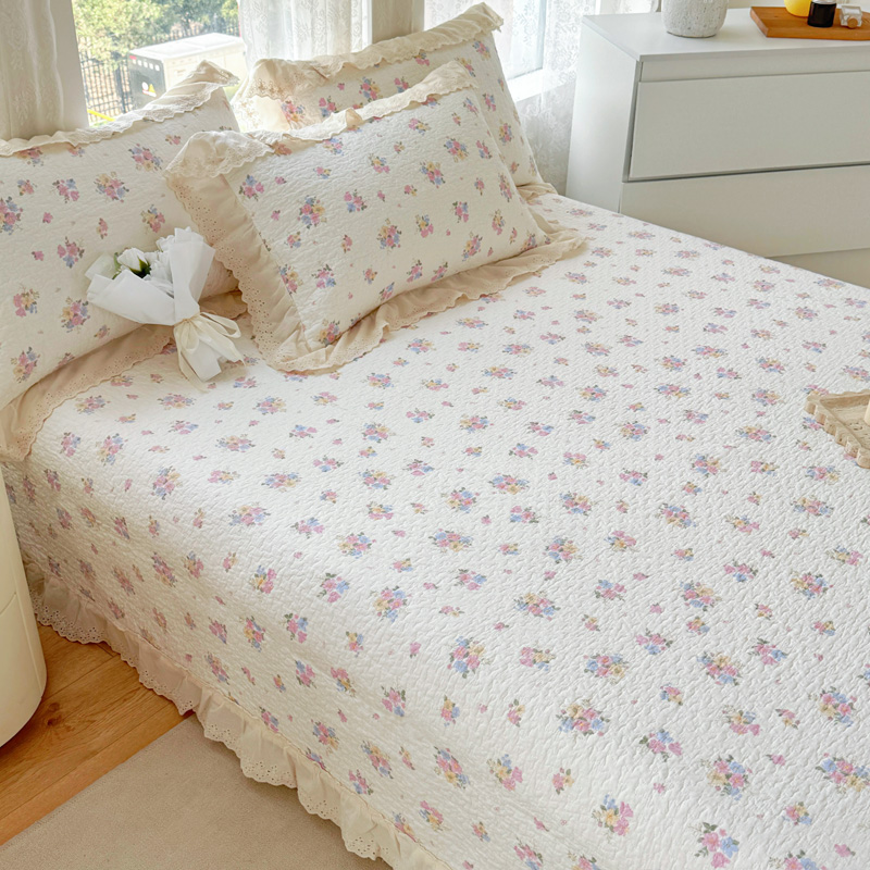 添越 2024小清新韩版蕾丝款花边纯棉夹棉床盖三件套全棉爱意时光蕾丝款,爱意时光蕾丝款