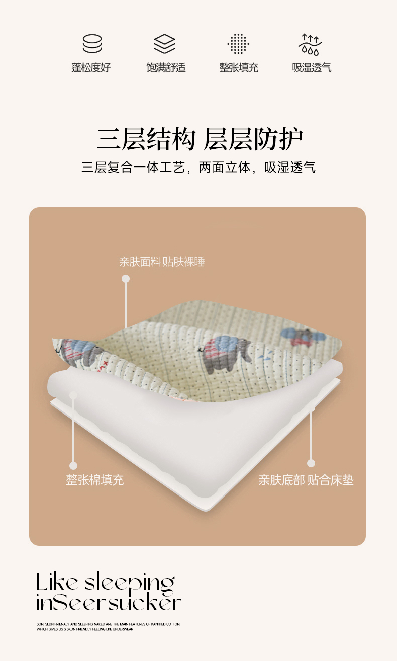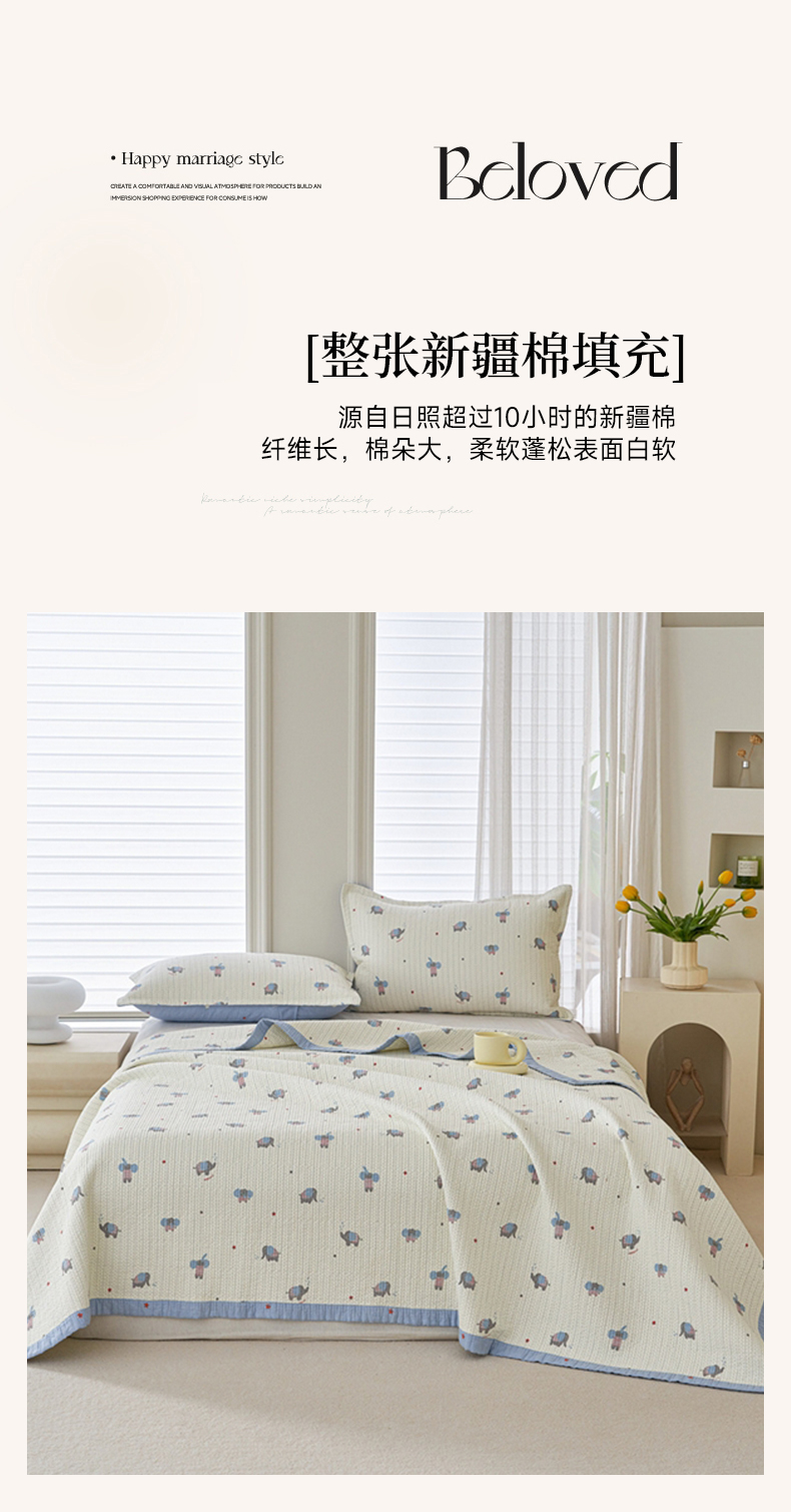 洽想家 2025新款里外夹棉新疆棉花水洗床盖A1系列 劳伦小象