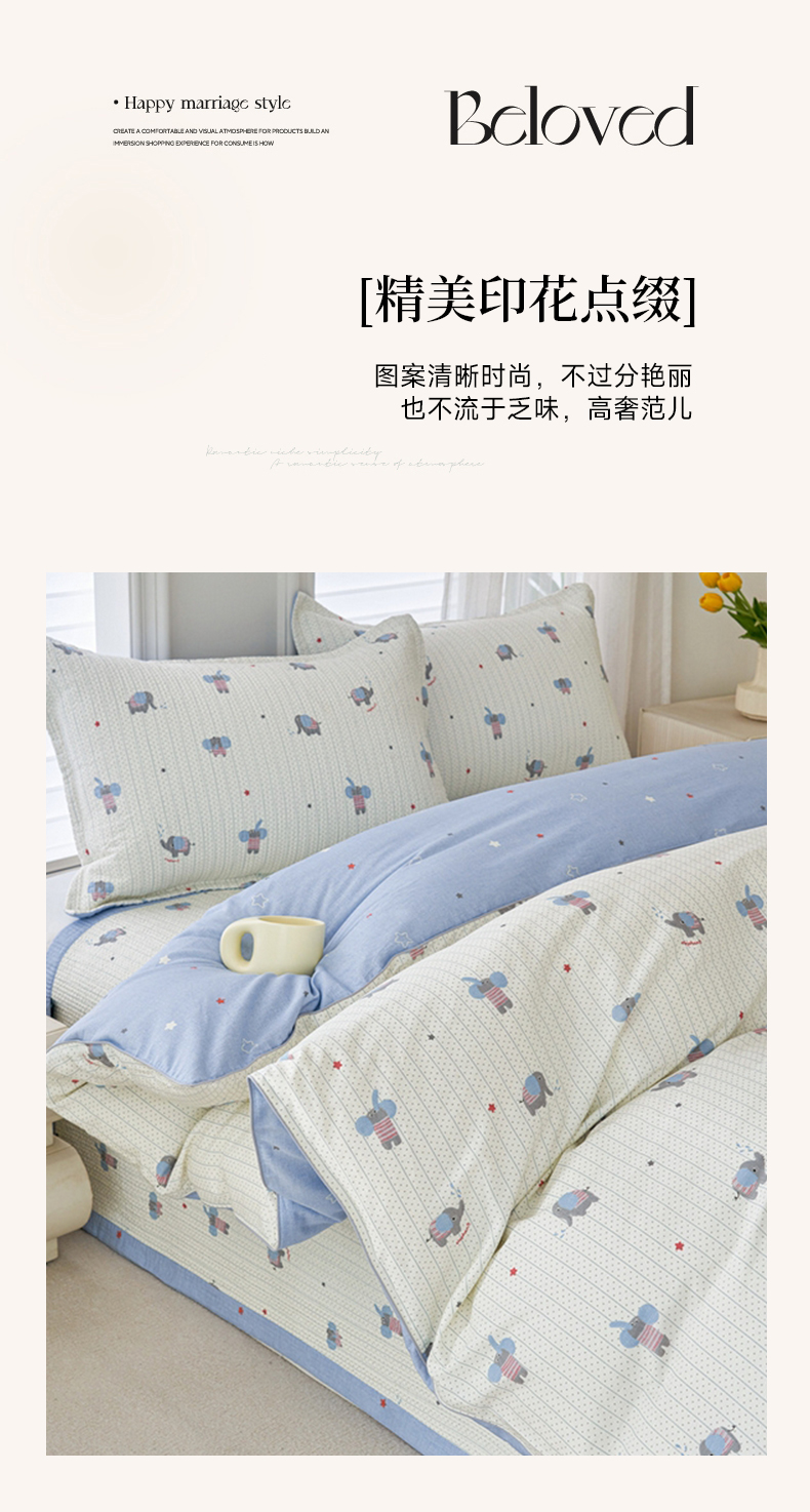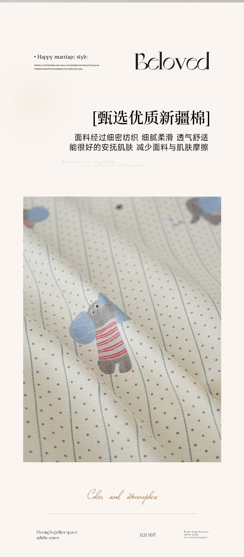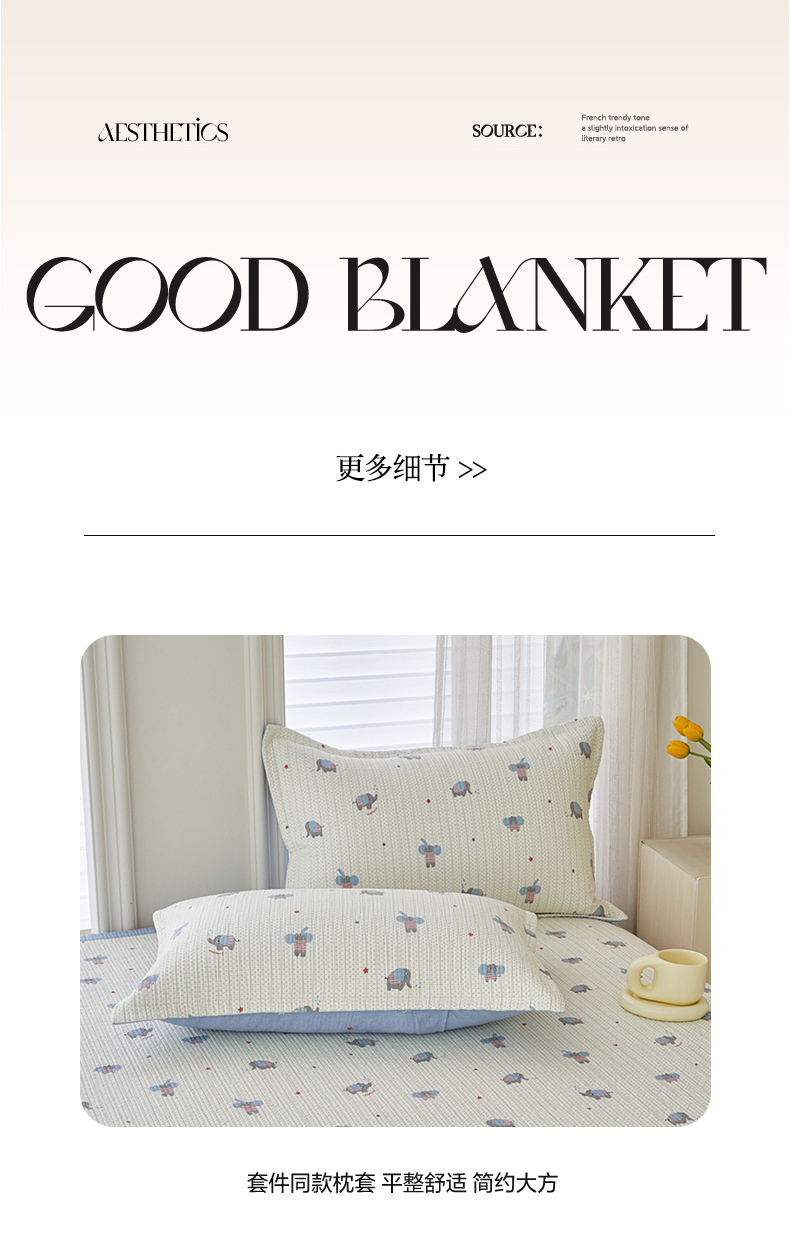当前位置: 91家纺网 > 商品网购 > 床上用品 > 床盖 > 洽想家 2025新款里外夹棉新疆棉花水洗床盖A1系列 劳伦小象