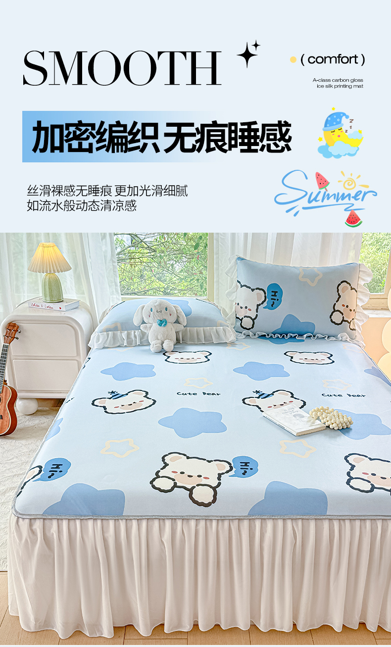 当前位置: 91家纺网 > 商品网购 > 床上用品 > 凉席 > 冰丝席 > 康纳利 2025新款碳光冰丝席床裙款凉席软凉席 复合冰丝床裙款-幸运熊