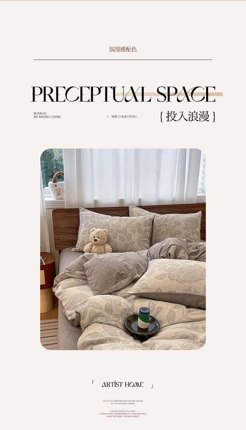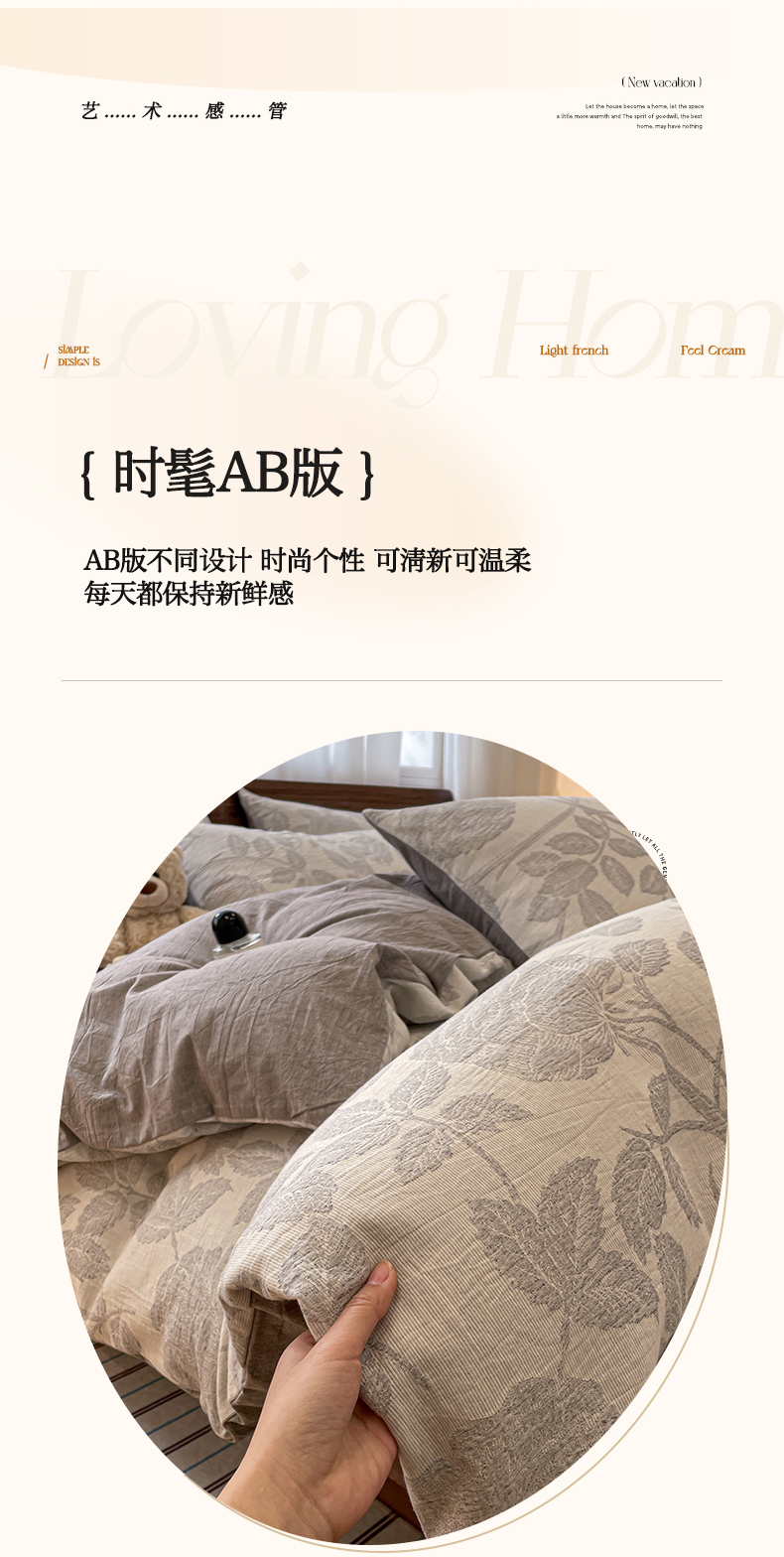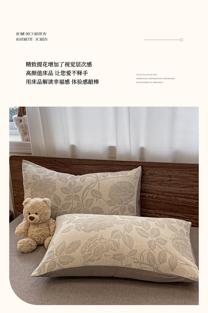 当前位置: 91家纺网 > 商品网购 > 床品套件 > 四件套 > 色织四件套 > 菡宝 2025新款a类母婴级纯棉全棉纯棉色织三层纱提花系列四件套 花想容-灰