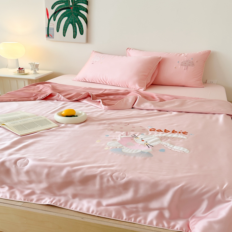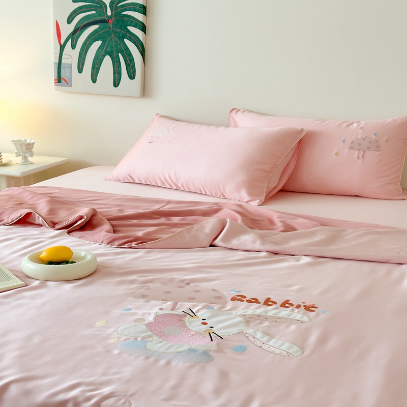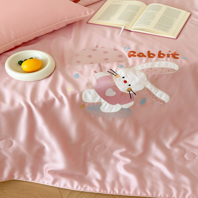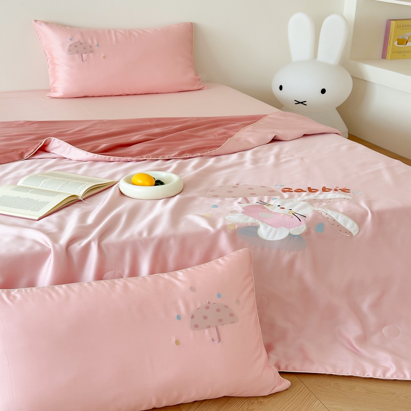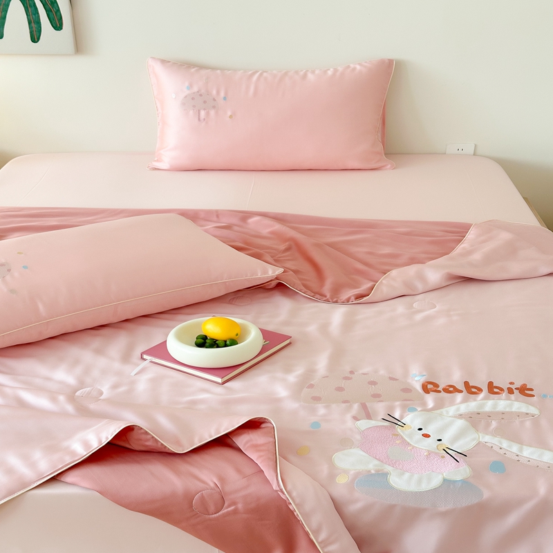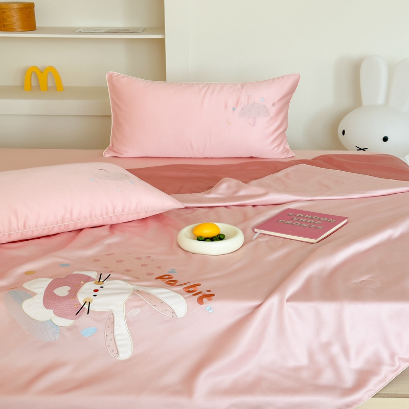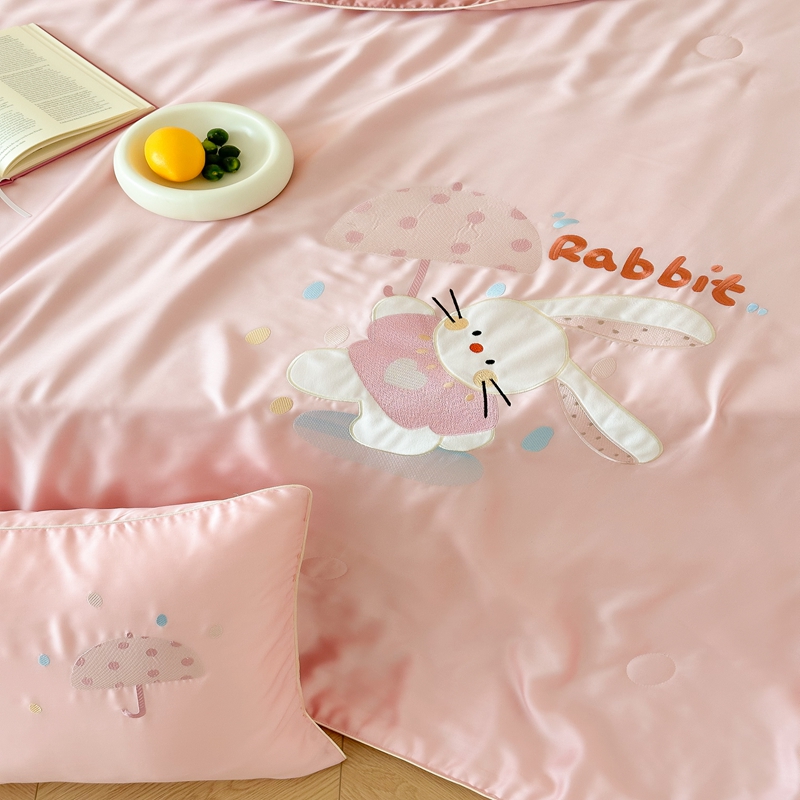 (总)西西家居 2025新款60支兰精天丝儿童夏被(面料A类)绣花款-雨伞小兔