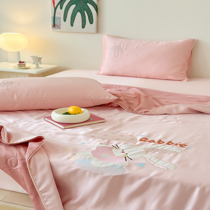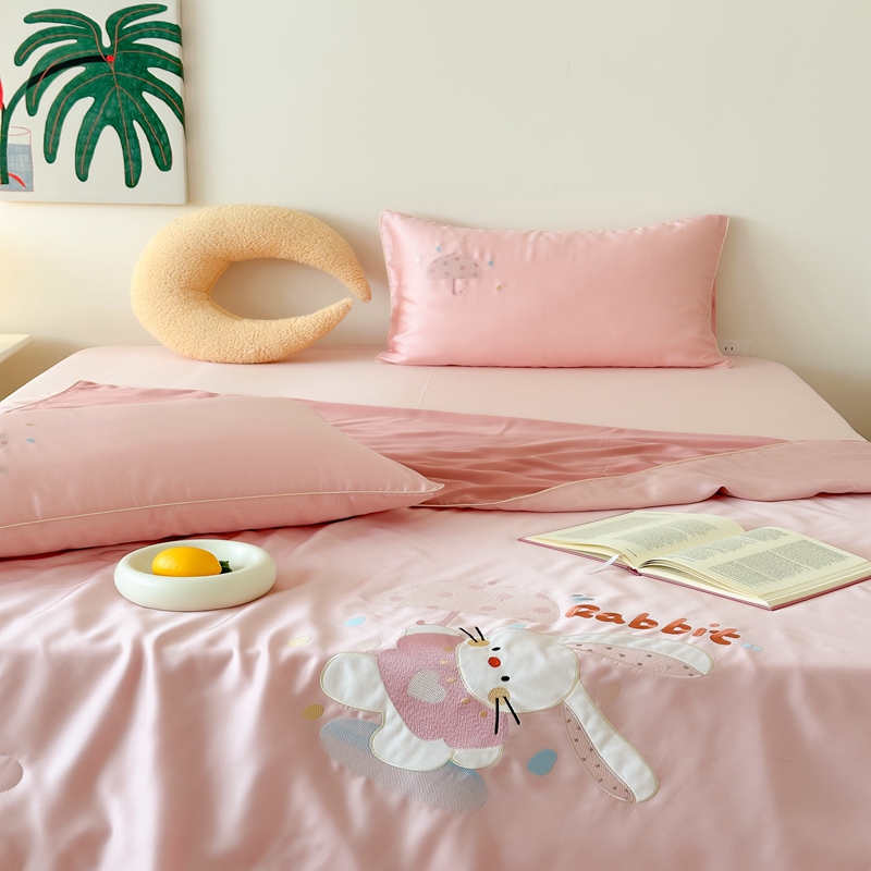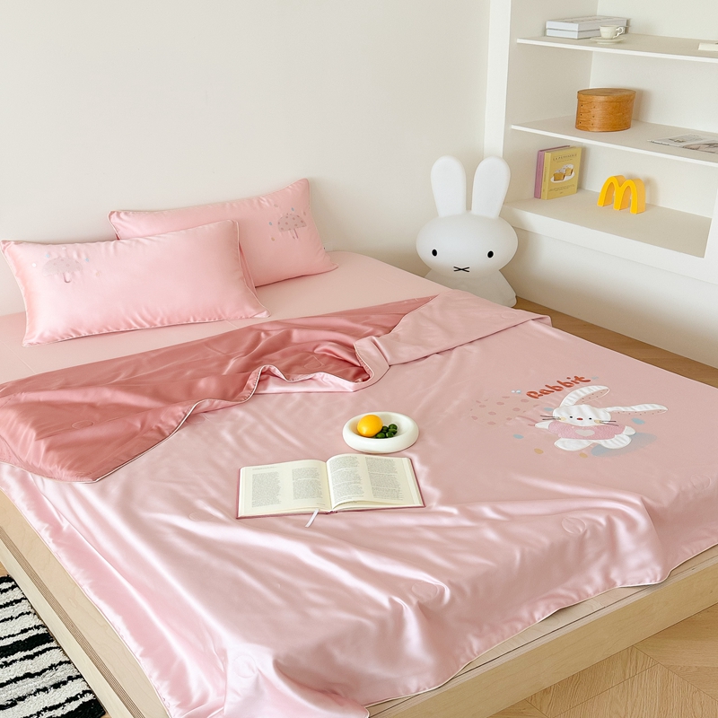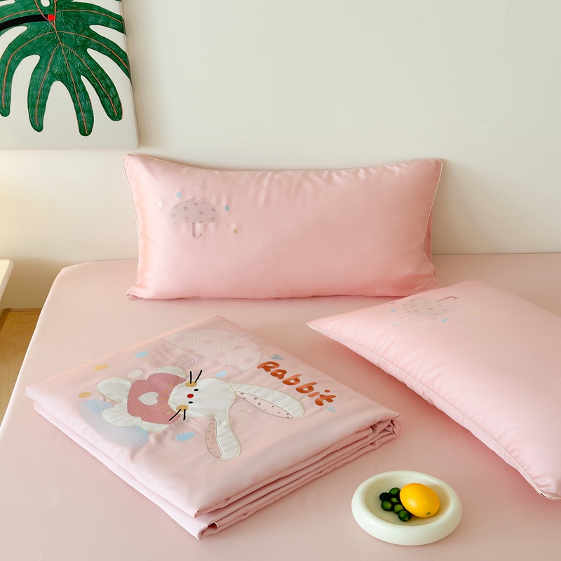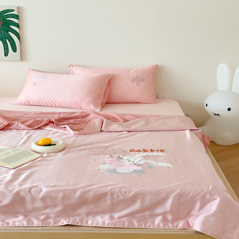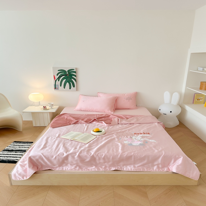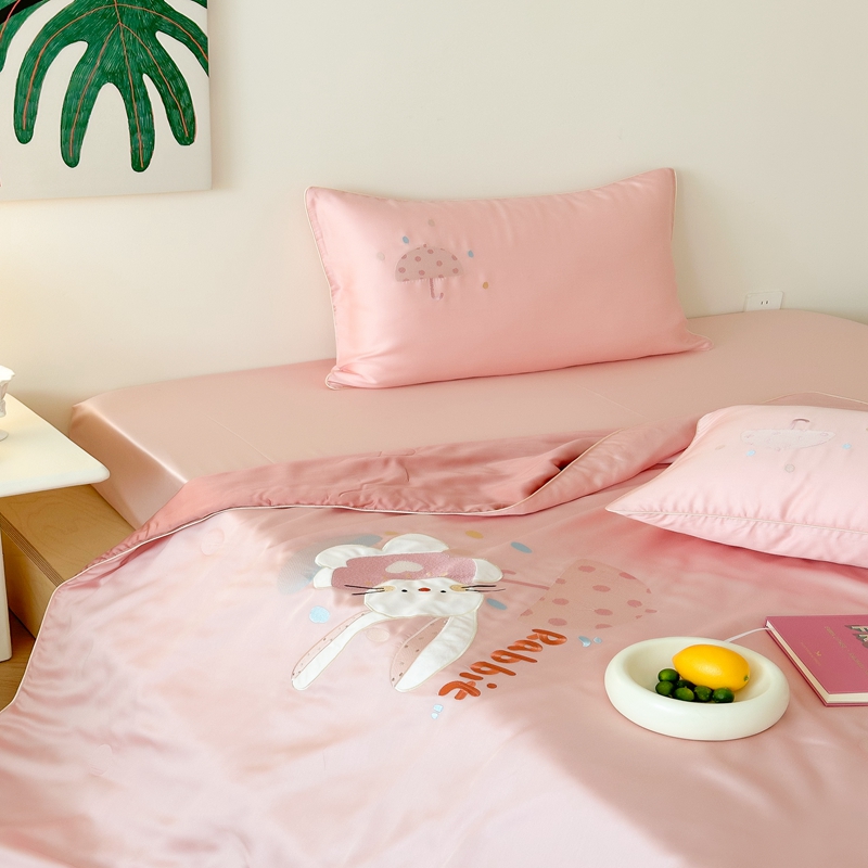 (总)西西家居 2025新款60支兰精天丝儿童夏被(面料A类)绣花款-雨伞小兔