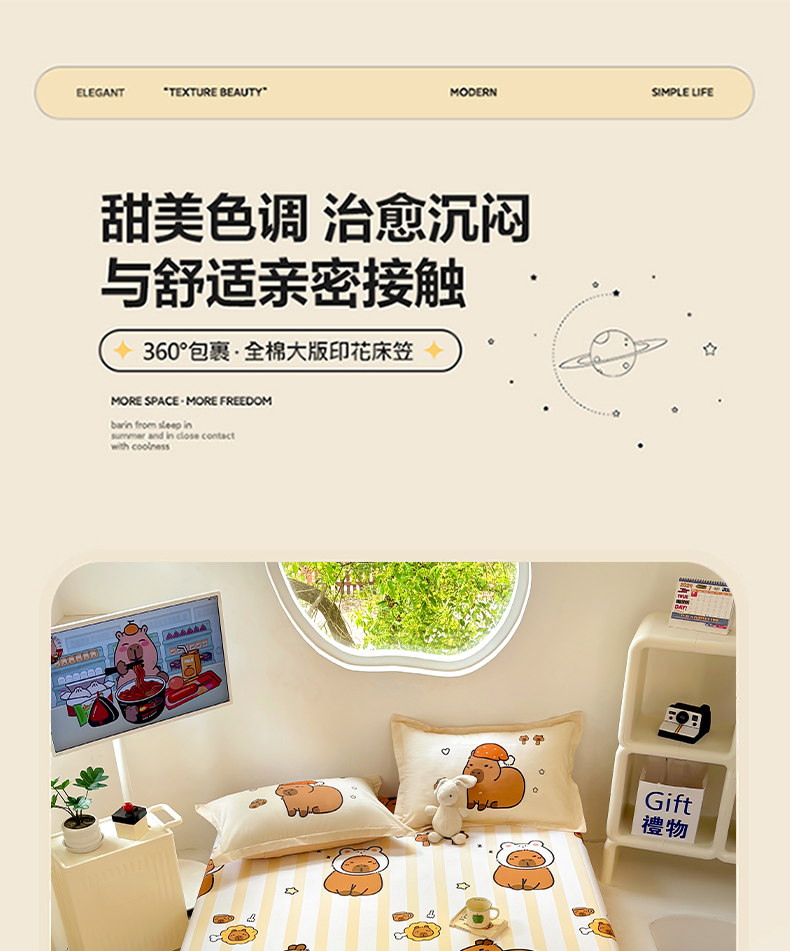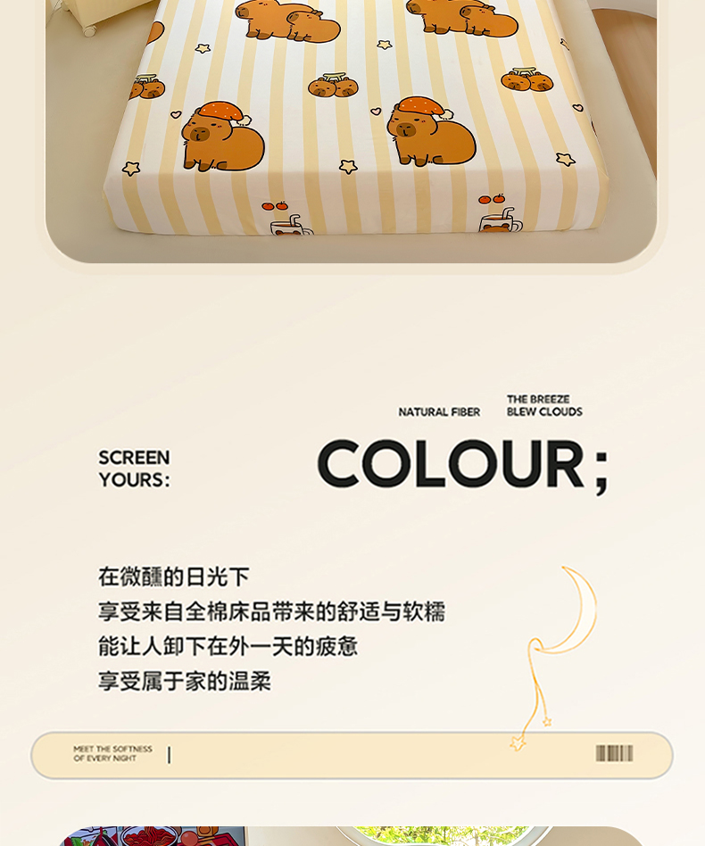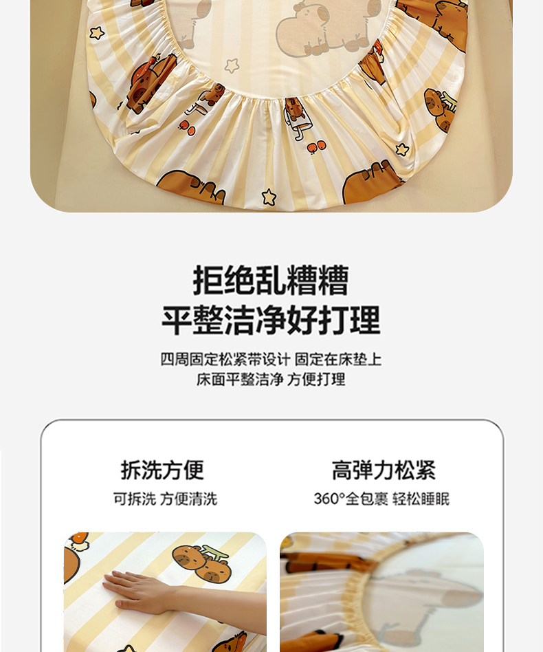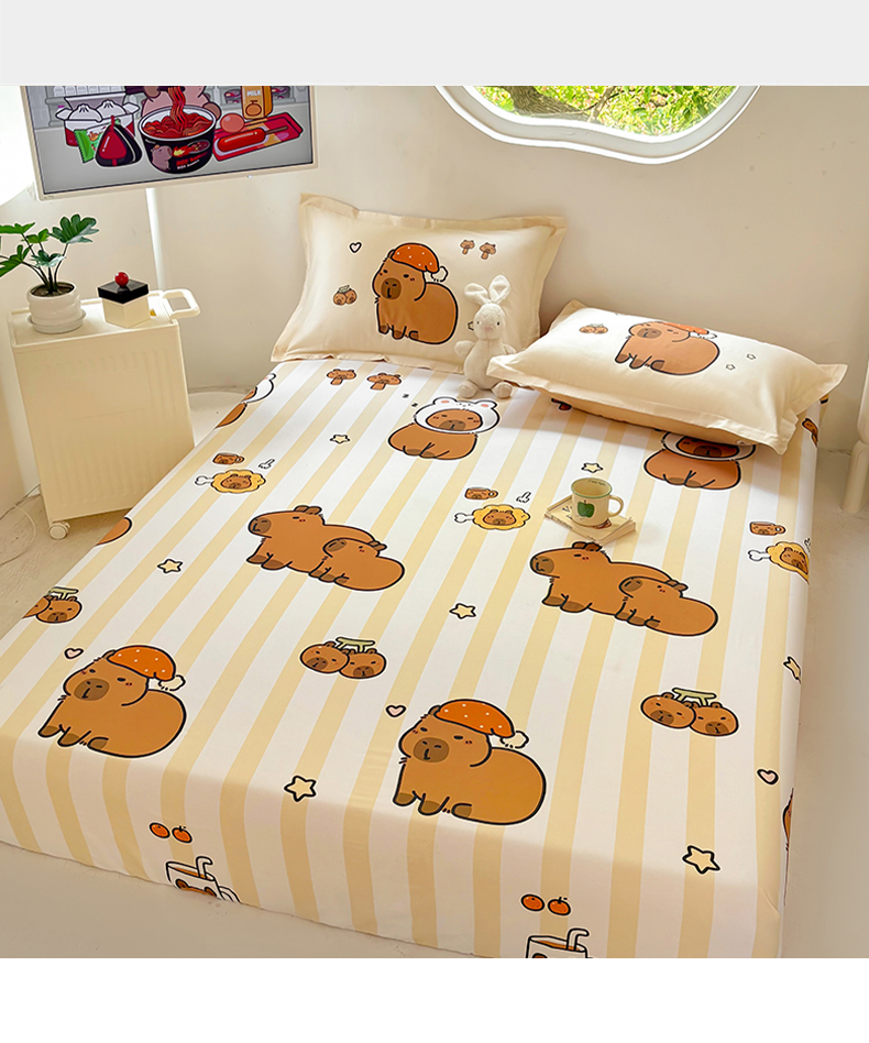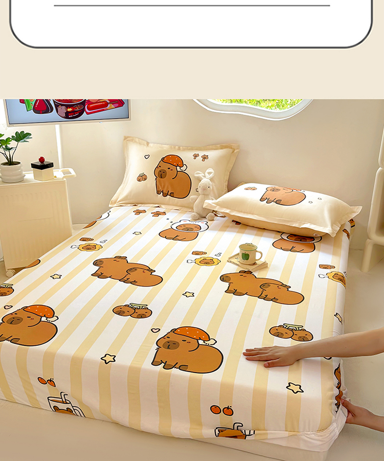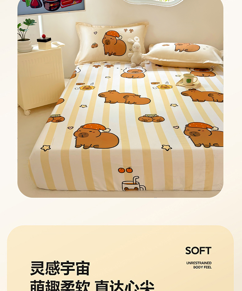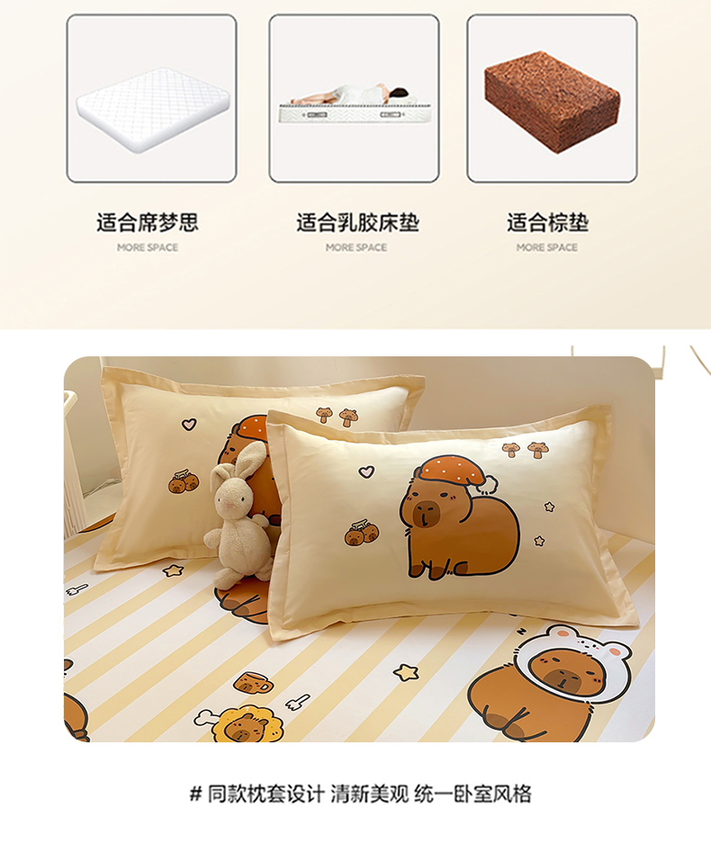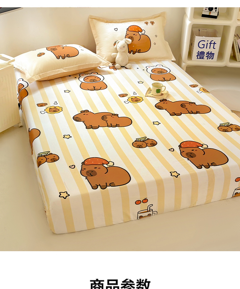 商品名称:浩诚 2025新款卡皮巴拉原创IP全棉纯棉大版单床笠单枕套床笠枕套单件-有作品登记证书 条纹巴拉