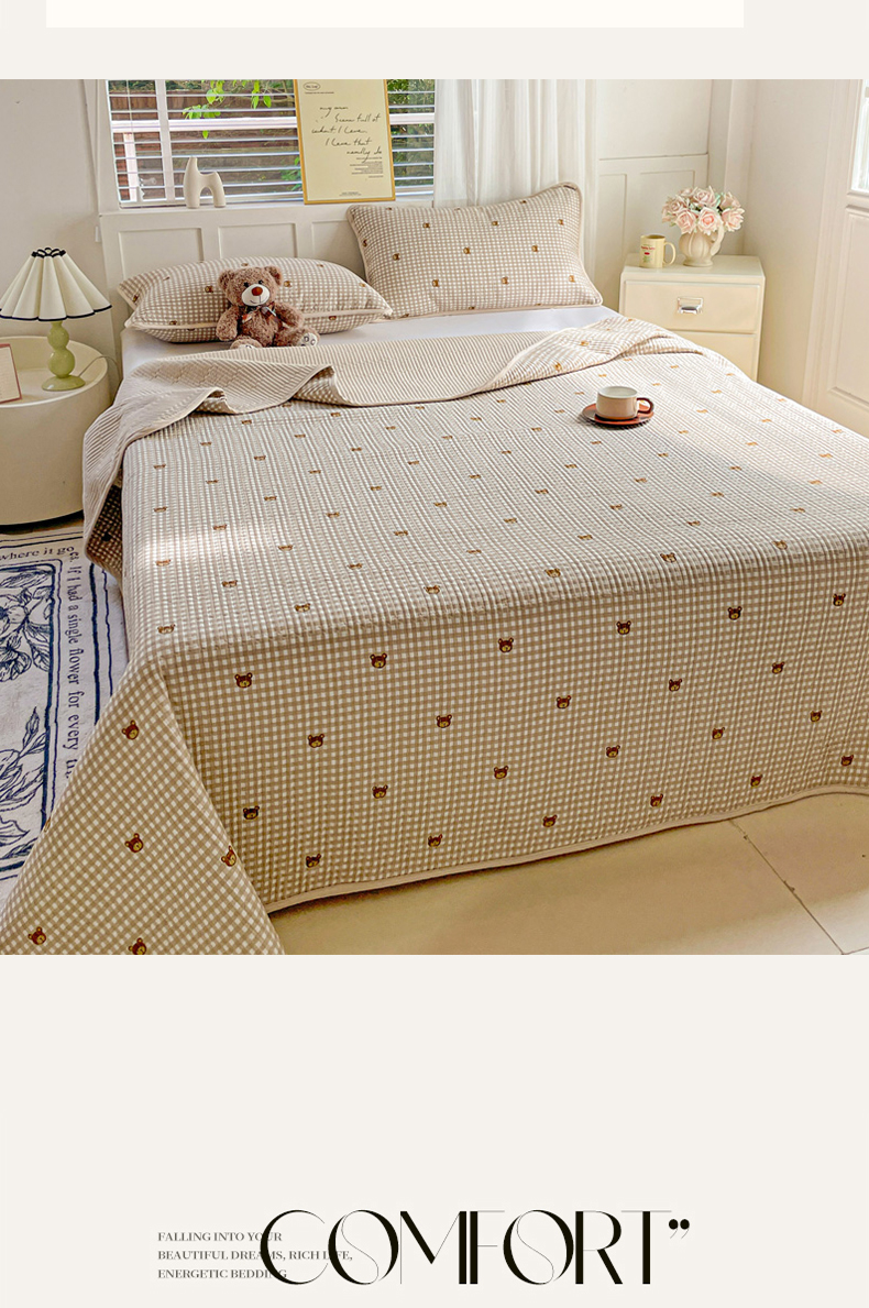 当前位置: 91家纺网 > 商品网购 > 床上用品 > 床盖 > 金丝兔 2025新款小清新亲肤印花水洗棉单床盖 夹棉床盖 床盖三件套 西高地