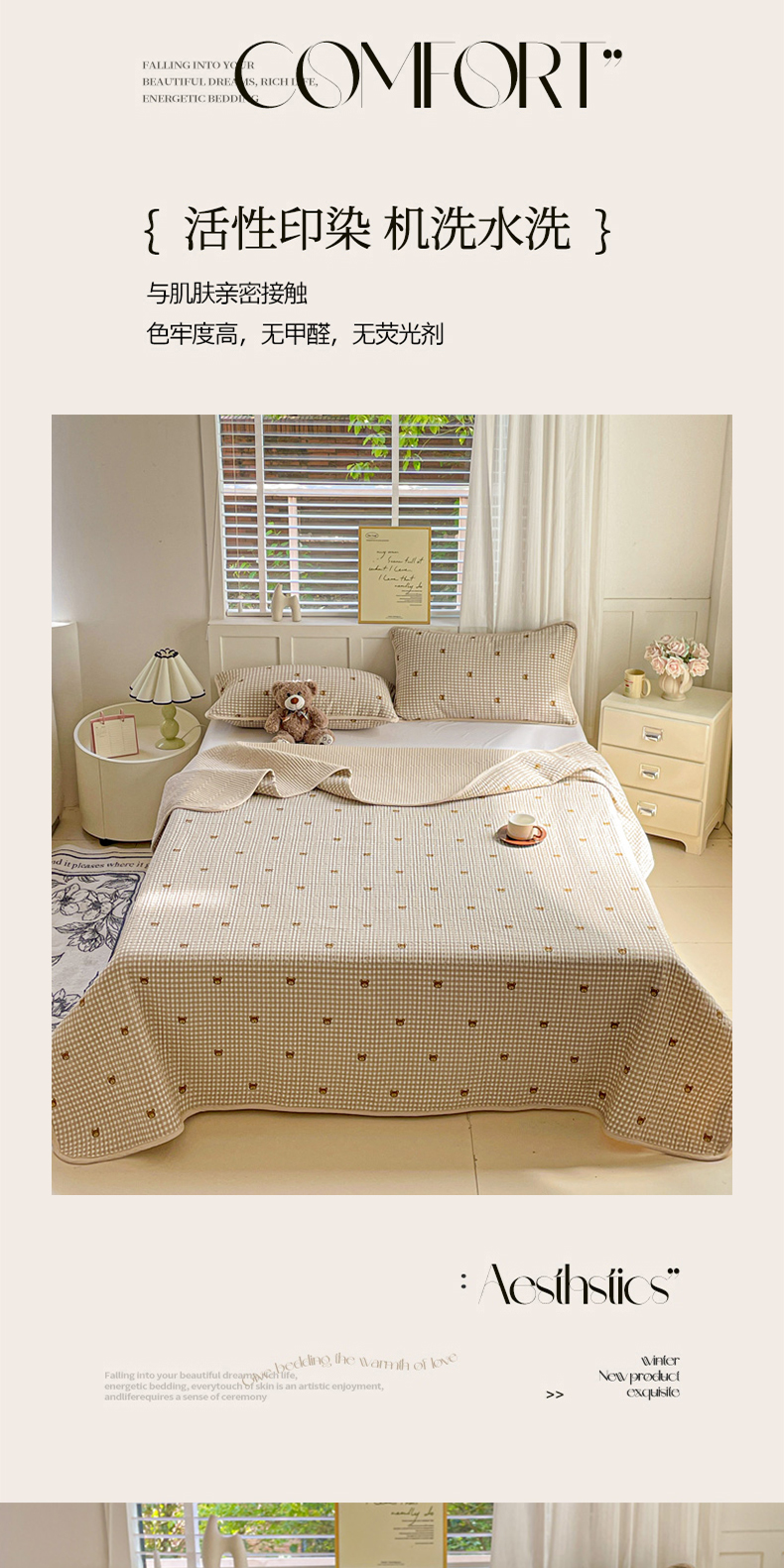 • 91家纺网 家纺一手货源 找家纺 金丝兔 2025新款小清新亲肤印花水洗棉单床盖 夹棉床盖 床盖三件套 西高地