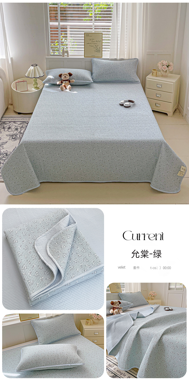 • 91家纺网 家纺一手货源 找家纺 (总)金丝兔 2026春夏新品全棉床盖三件套纯棉砂洗床盖榻榻米炕盖加厚碎花床单,布里斯托,费尔岛,格子爱心,蝴蝶结,吉吉兔,蓝汐,硕果,星星人,樱桃小城,组合图
