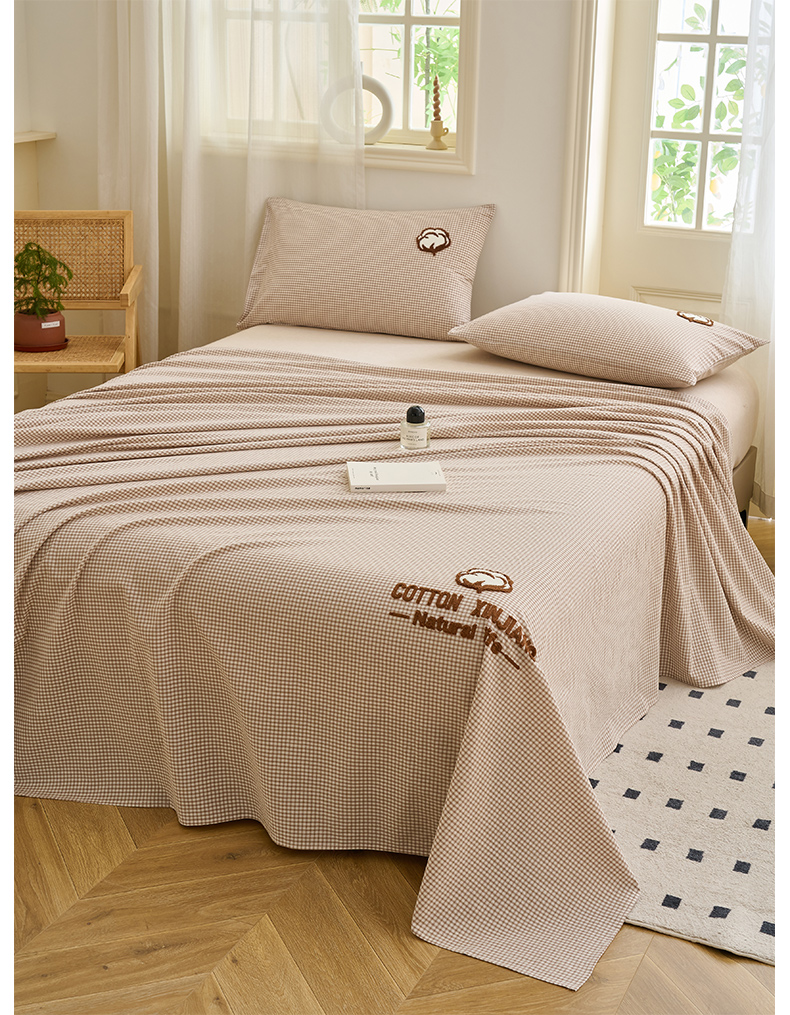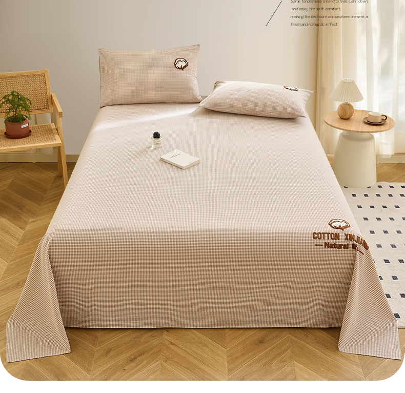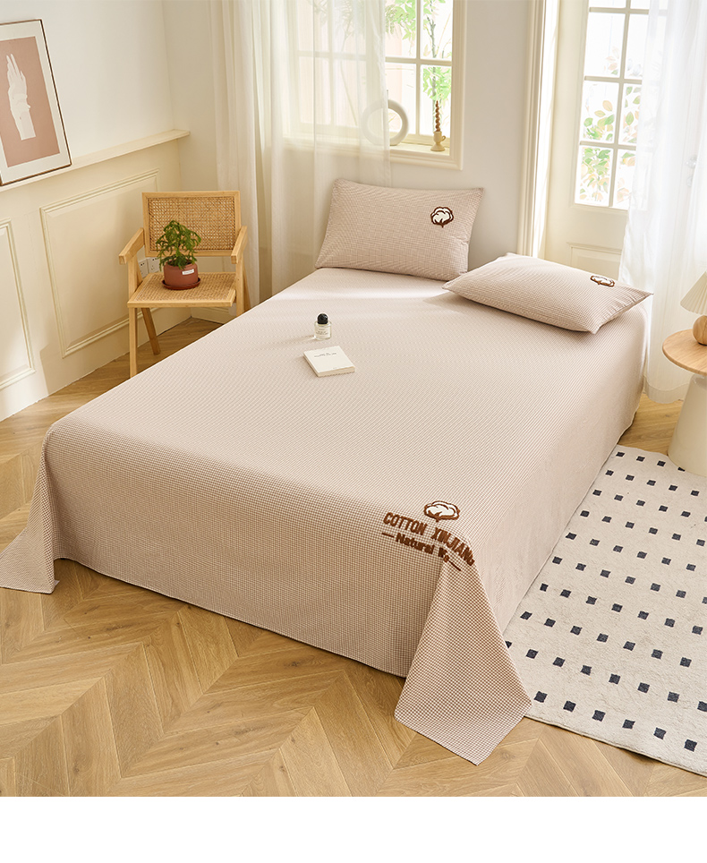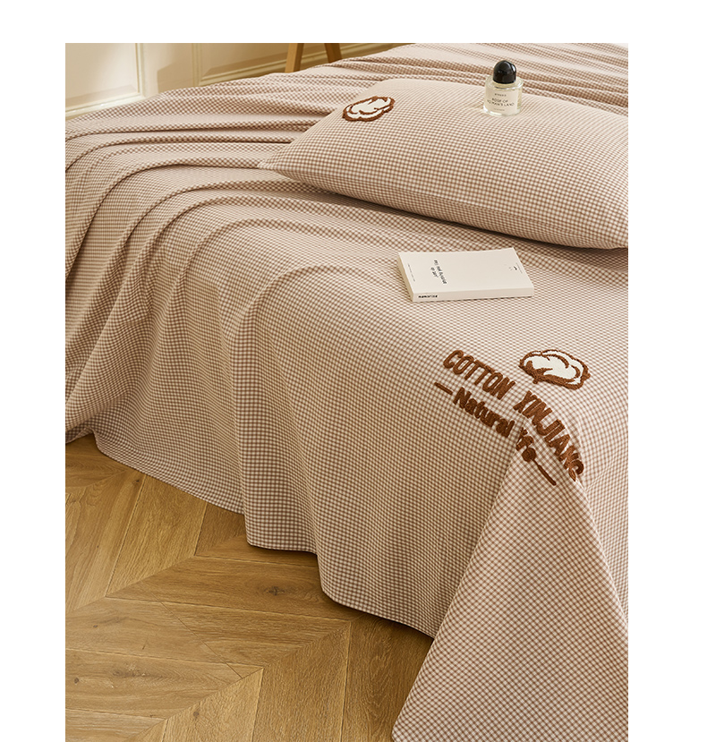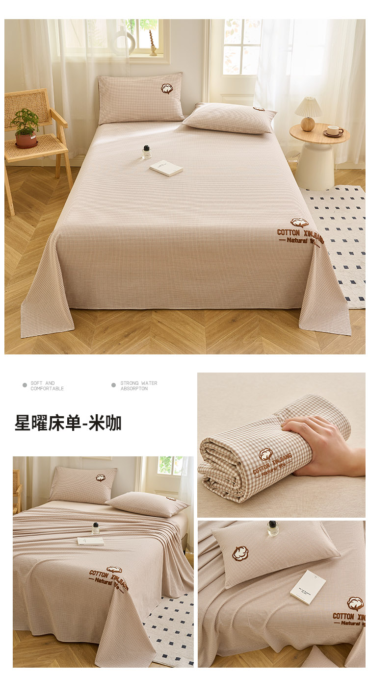 早晨家纺 2025新款色织纯棉水洗棉毛巾绣床单 星曜床单-米咖