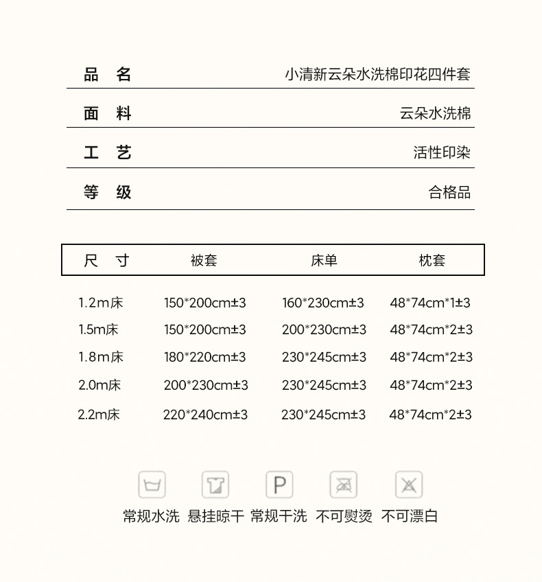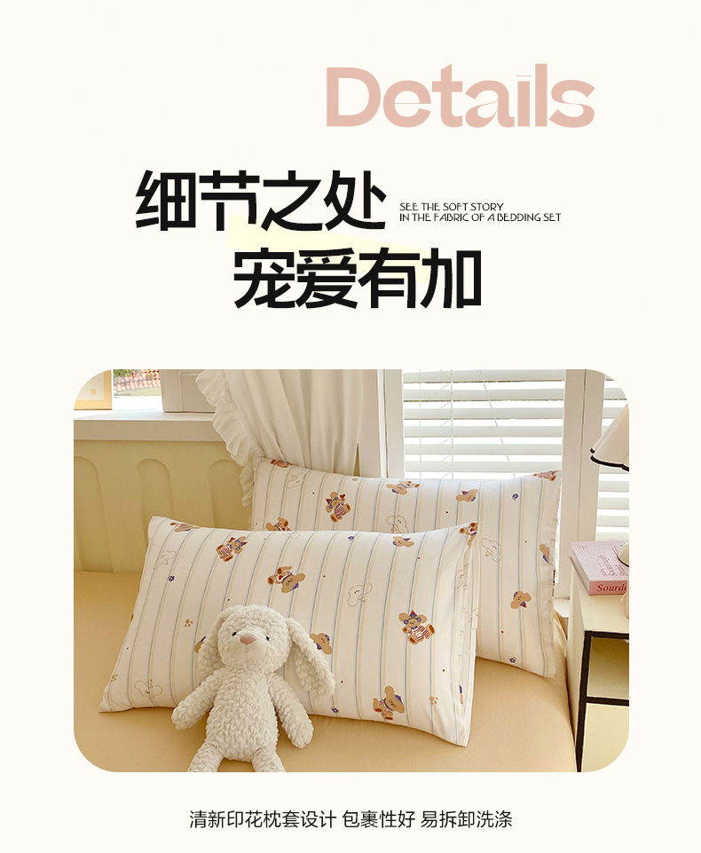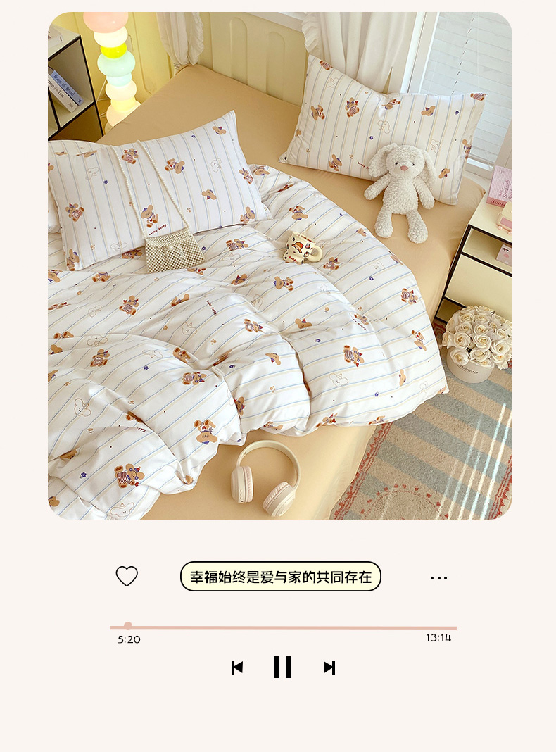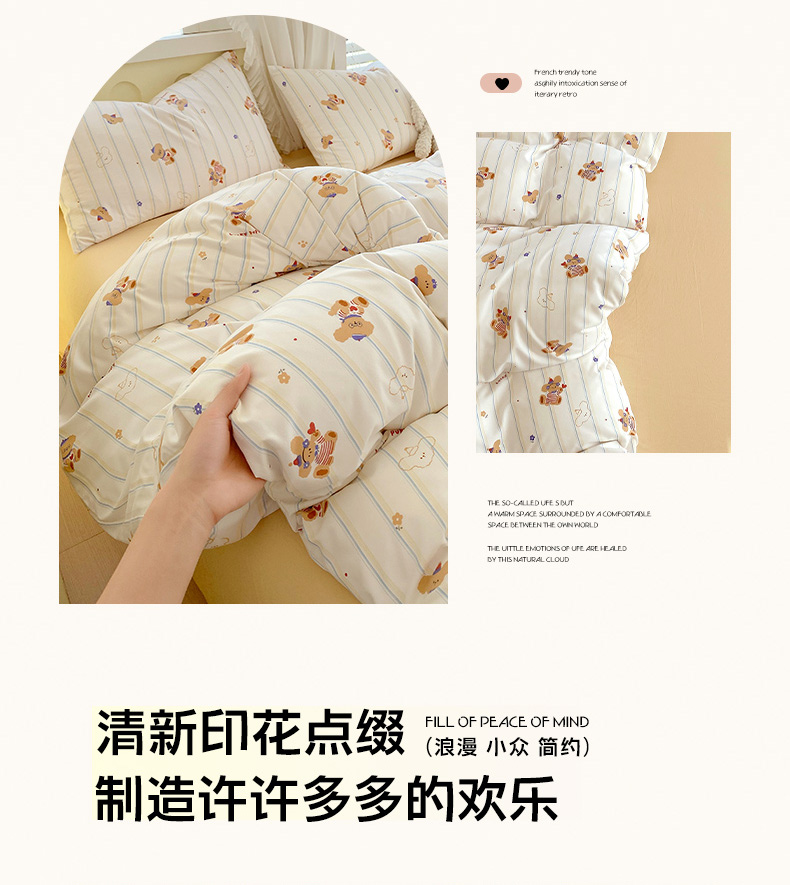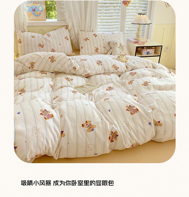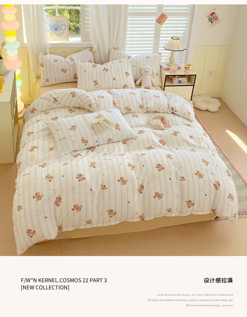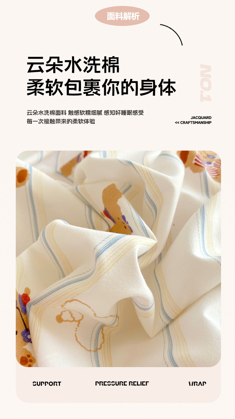当前位置: 91家纺网 > 商品网购 > 床品套件 > 四件套 > 水洗棉四件套 > 雨彤家纺 2025年新款软糯糯云朵水洗棉印花四件套 心乐熊