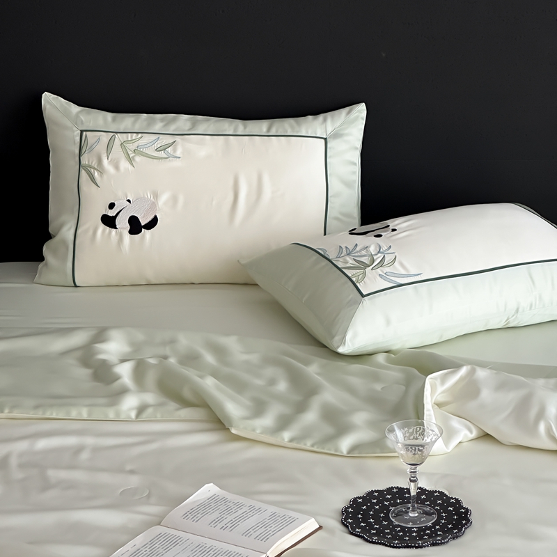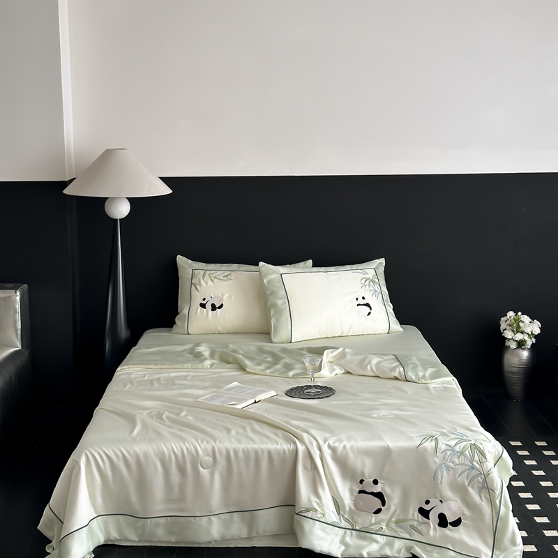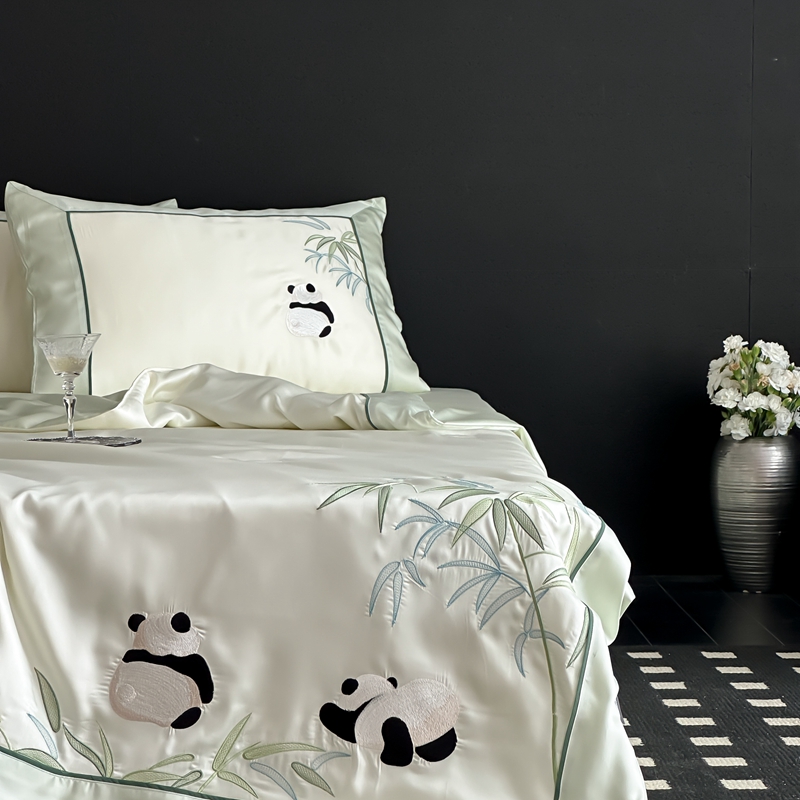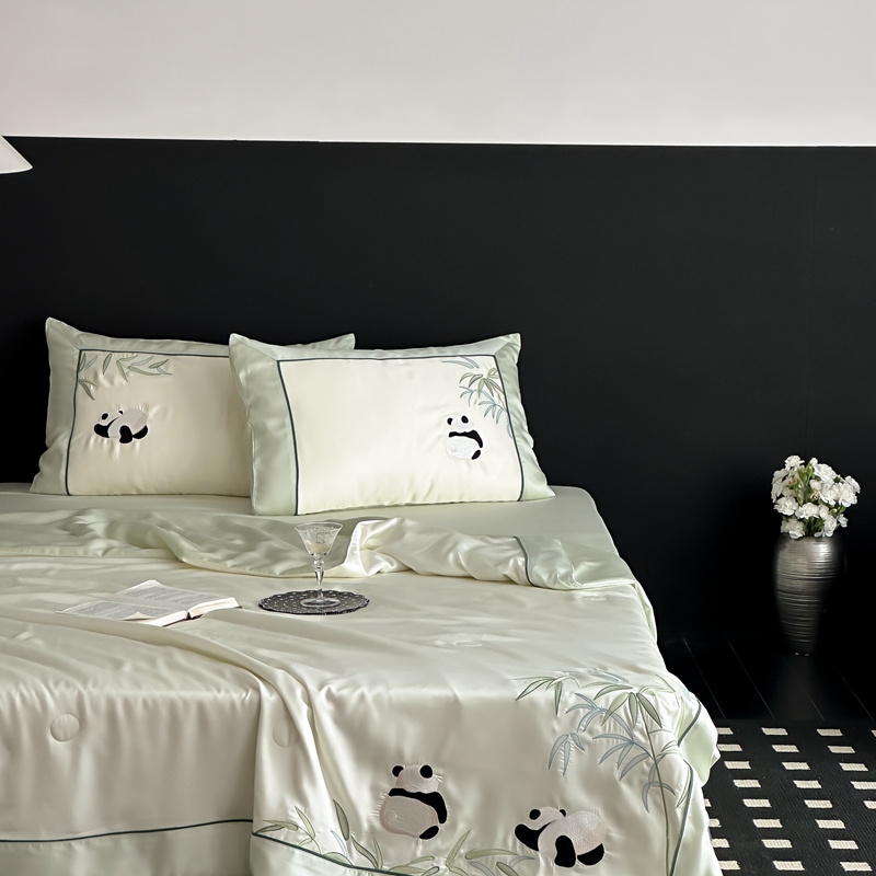 商品名称:MIU缪家居 2025新款60支兰精天丝夏被四件套 熊猫与竹 单夏被控价288/四件套控价388 爽白