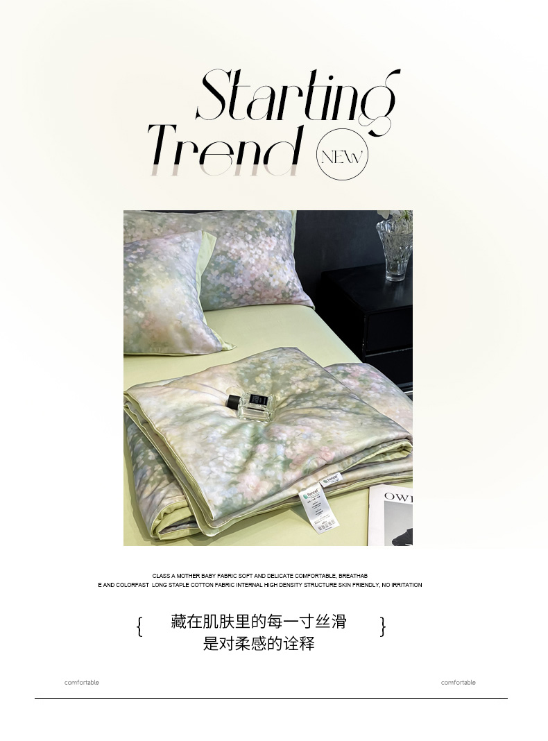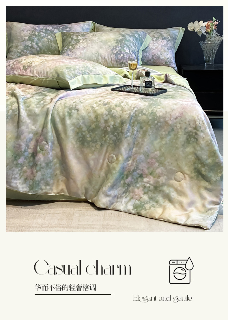 商品名称:慕尚家纺 2025新款莱赛尔天丝夏被夏凉被空调被四件套 温岚绿