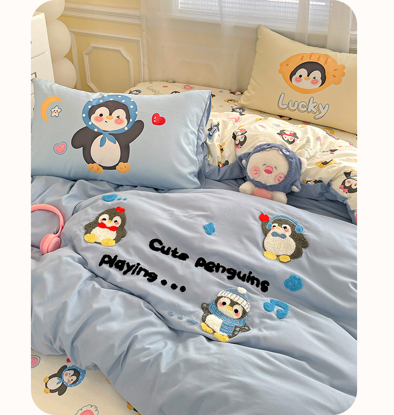 (总)一霖家纺 2025新款高克重牛奶绒床盖款毛巾绣四件套,吹泡泡黄色,吹泡泡蓝色,过生日的海宝和派派,晚安小新,小新大白