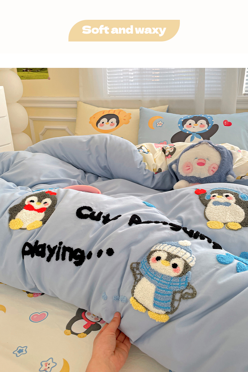 (总)一霖家纺 2025新款大版卡通牛奶绒四件套,搞怪新新紫,俏皮小新-黄,俏皮小新-蓝,甜心猫咪,星空小新