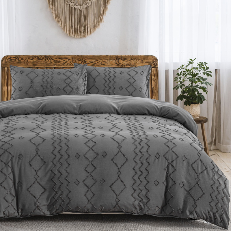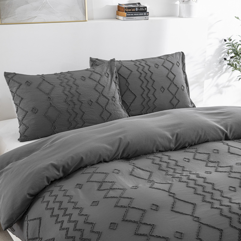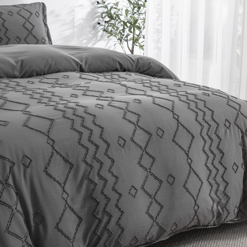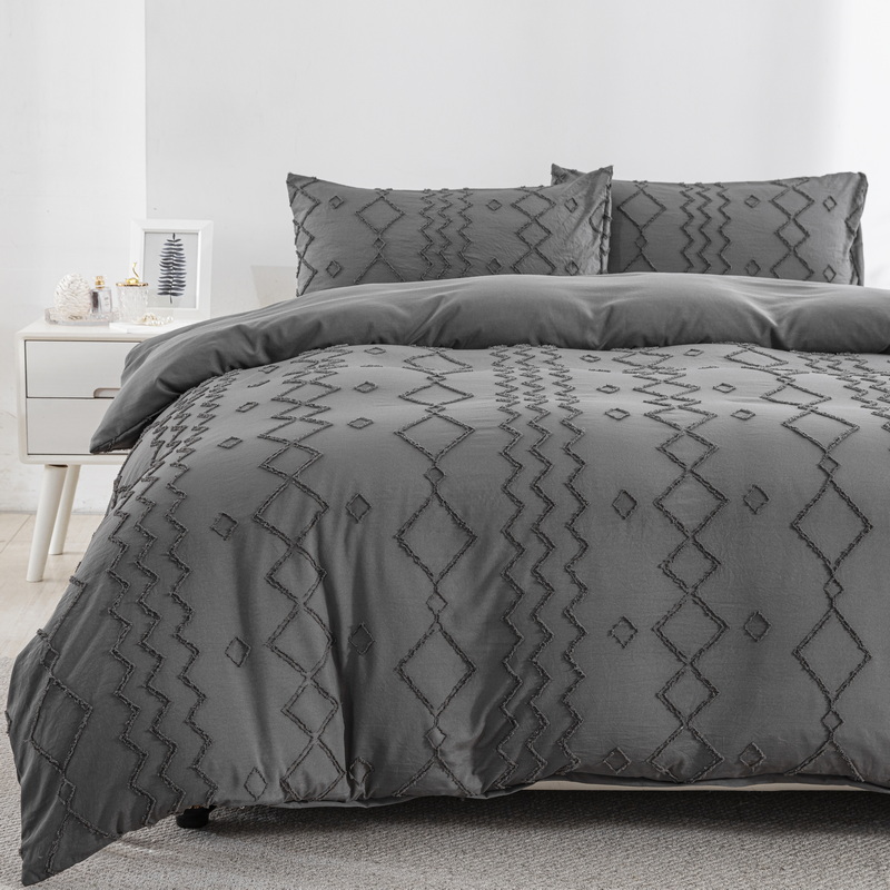 当前位置: 91家纺网 > 商品网购 > 跨境商品 > 床上用品(Bedding) > 床品套件(Bedding Comforter Sets) > 子不语家纺2025新款跨境外贸 剪花簇绒纯色三件套亚马逊Temu速卖 通Shein沃尔玛专供 菱形波浪深灰