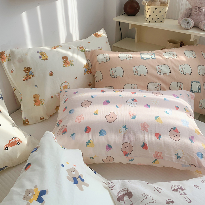 柚可家居 2024新款全棉双层纱枕套-卡通系列 小熊花花米