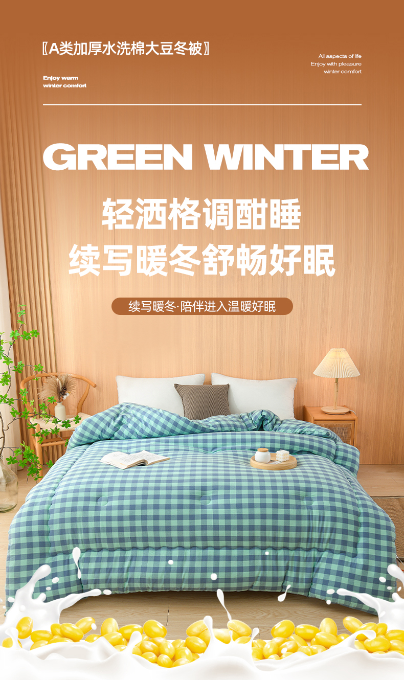 (总)易展2025新款无印水洗棉格子大豆冬被