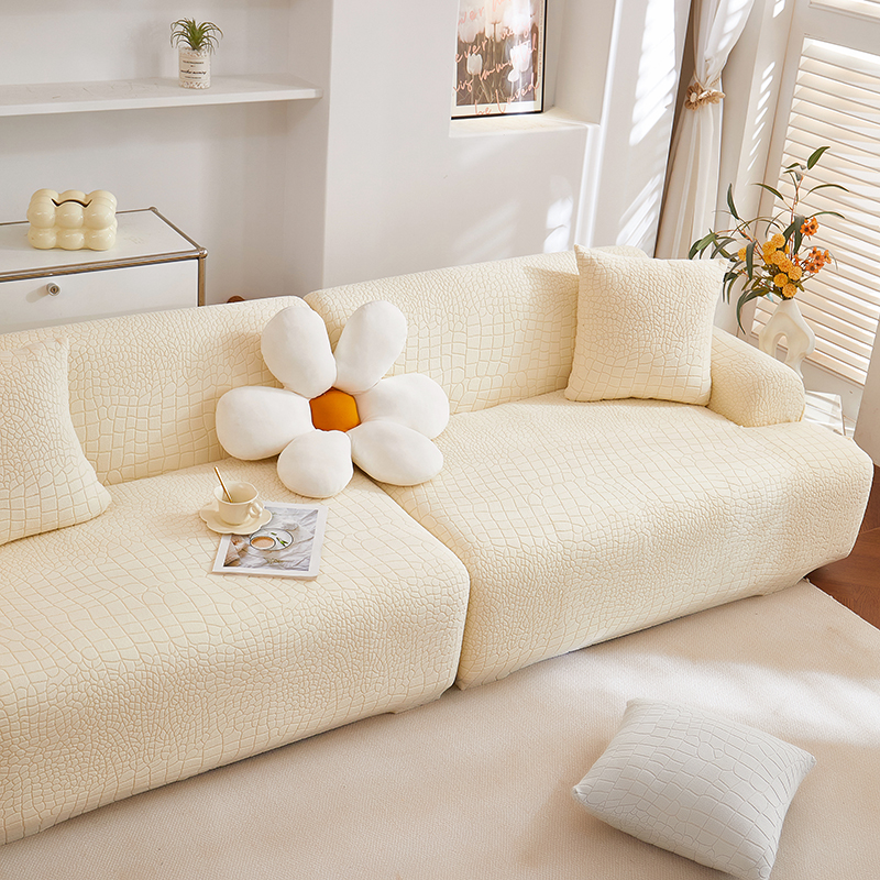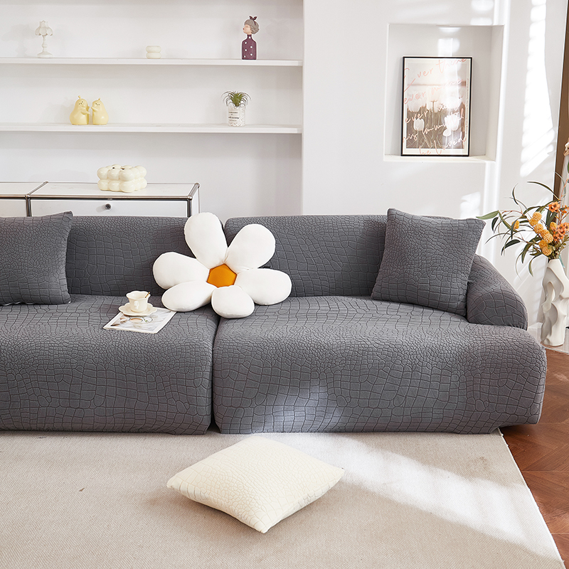 丝绮鹿 2025新款雕花绒水立方沙发套松紧款(直排图) 深灰