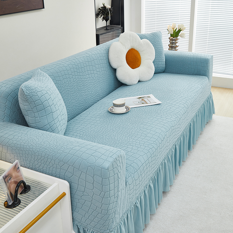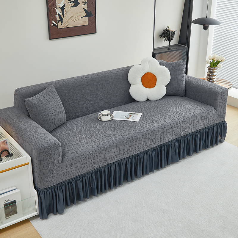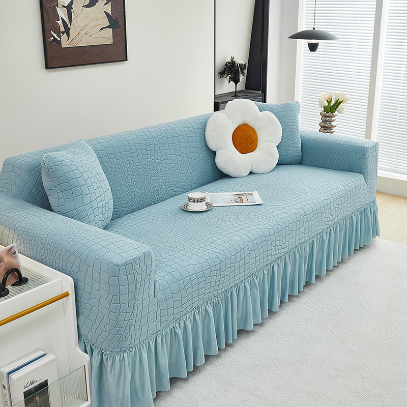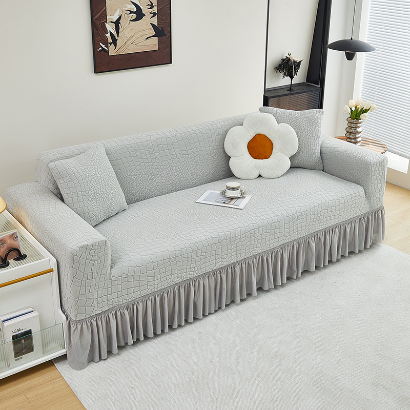 当前位置: 91家纺网 > 商品网购 > 居家布艺 > 坐垫/椅垫/沙发垫 > 沙发垫 > 丝绮鹿 2025新款雕花绒水立方沙发套裙边款(三人图) 浅灰