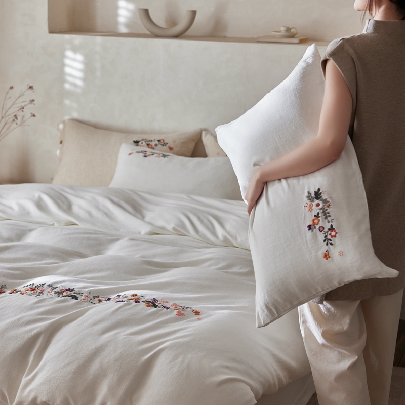 商品名称:安莱生活 2025新款手工绣鲁绣天丝麻高端四件套 绣春归-本白