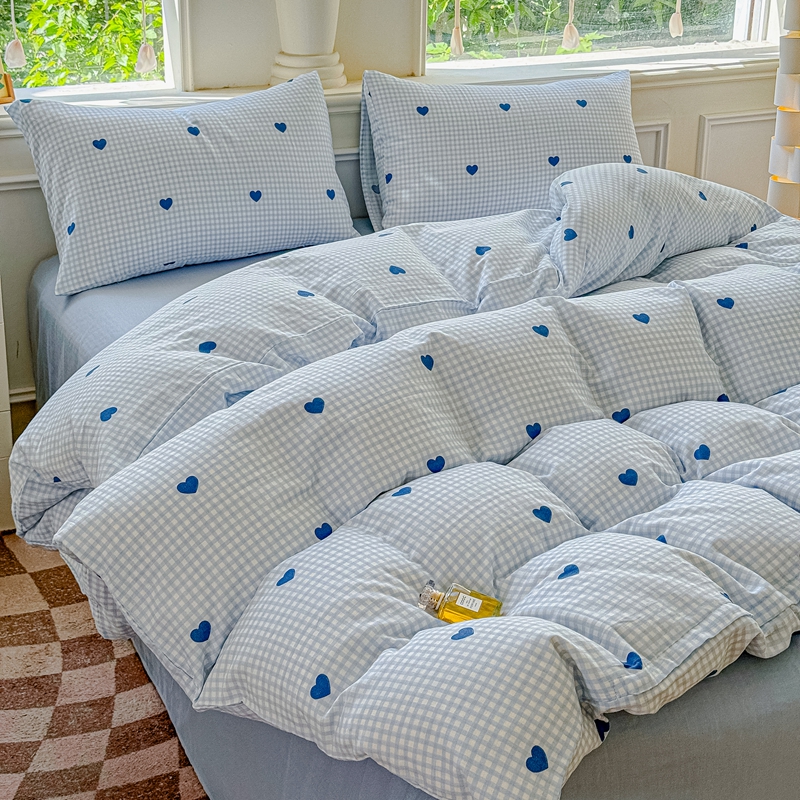 (总)感遇家纺 2022新款全棉印花四件套,格子小花,黑格恐龙,蓝色心情,浅暖