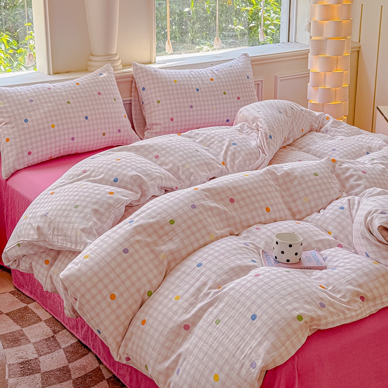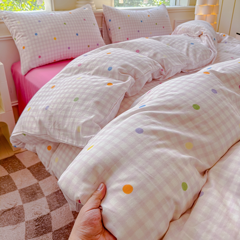 (总)感遇家纺 2025新款小清新甜系全棉四件套,百丽兔,波点小女孩,点点小狗,复古樱桃,格子草莓,格子樱桃,花间牧歌,灰条猫咪,奶绿,宁夏,森林小熊猫,甜心波点