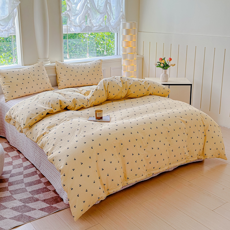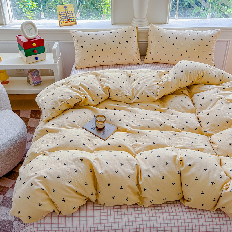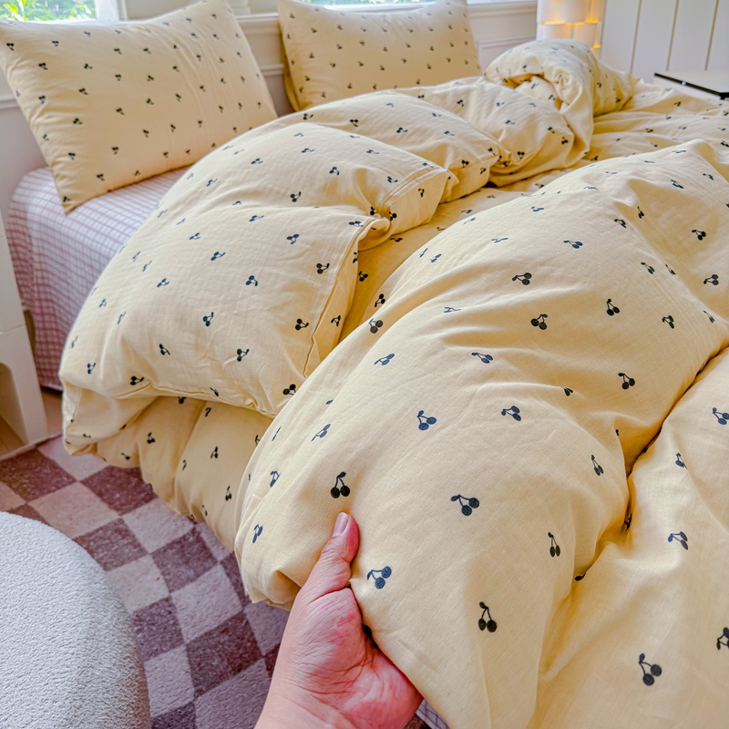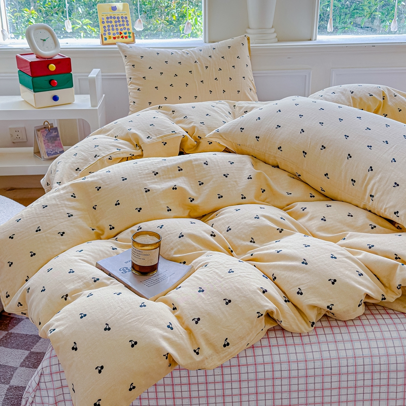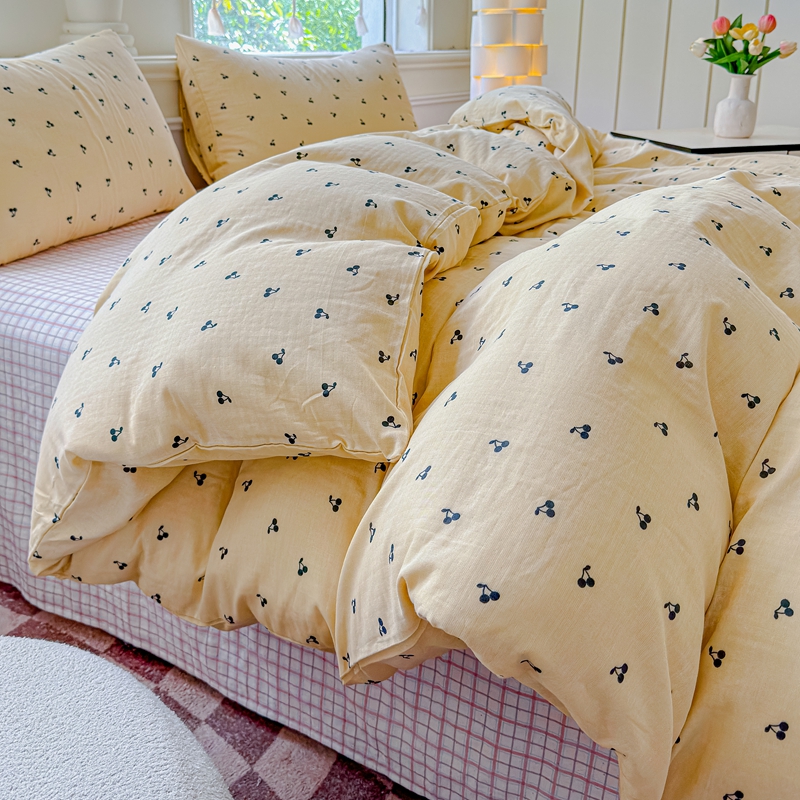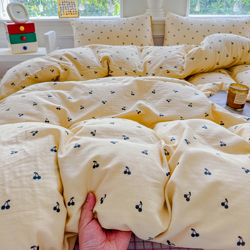 当前位置: 91家纺网 > 商品网购 > 床品套件 > 四件套 > 双层纱四件套 > 感遇家纺2025新款全棉双层纱纤柔四件套 樱桃