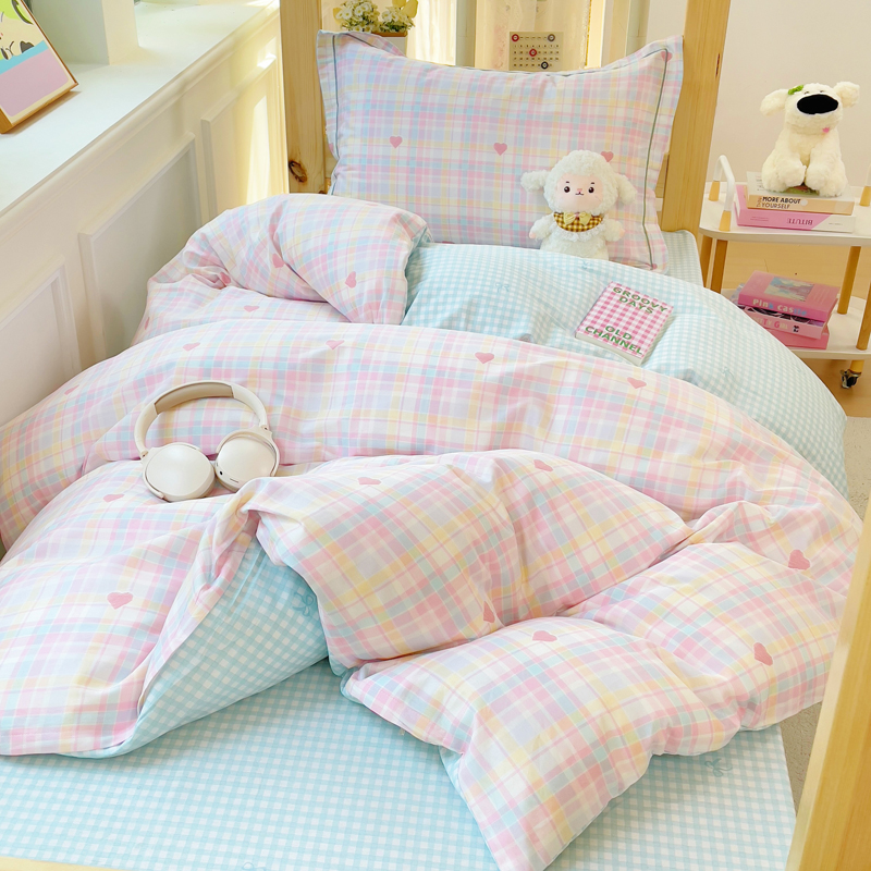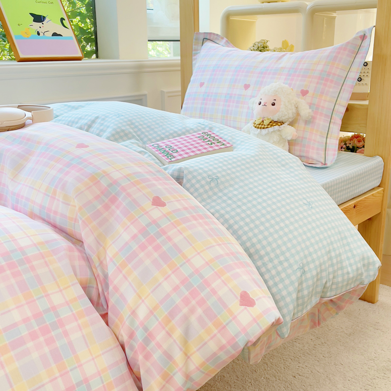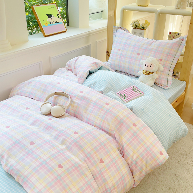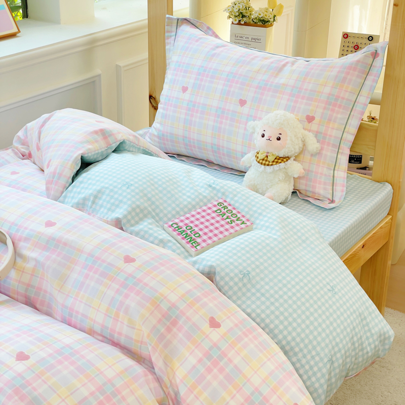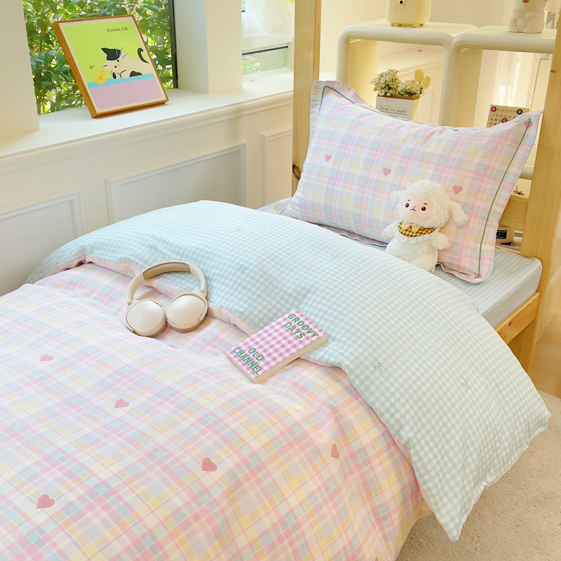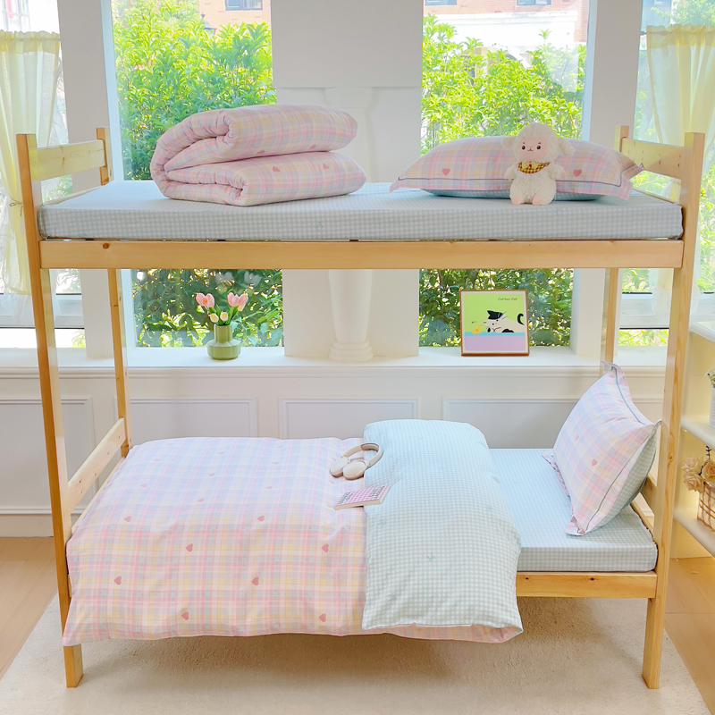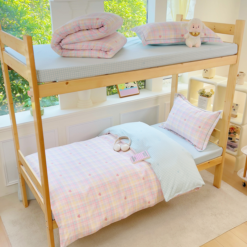 铭博家纺 新款100%全棉印花学生季宿舍上下铺三件套 加州甜心粉