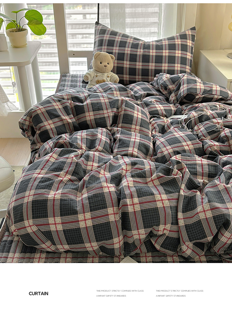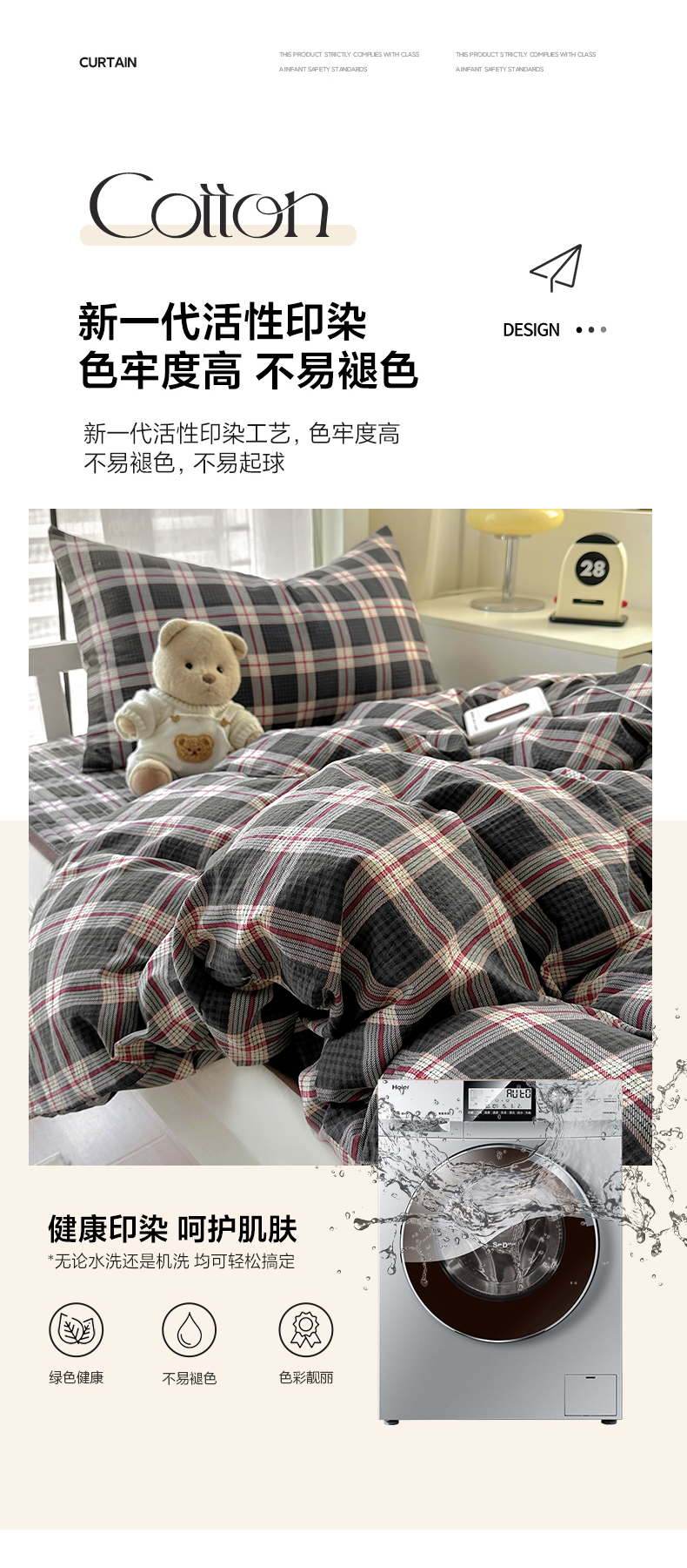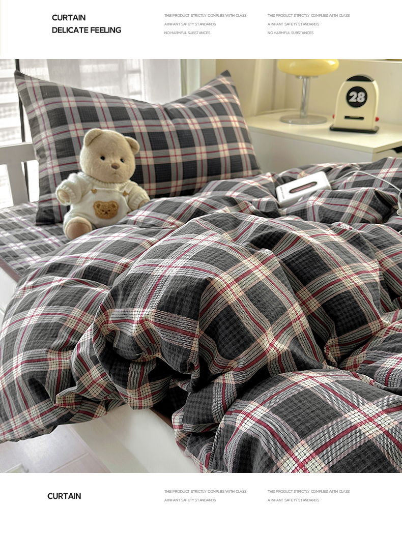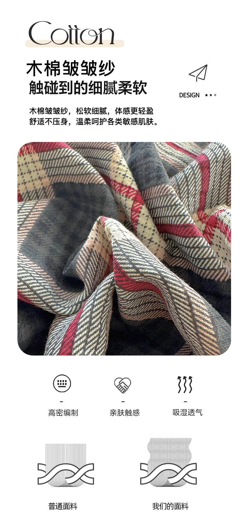 商品名称:美梦家纺2025新款木棉皱皱纱学生床盖四件套 幻夜