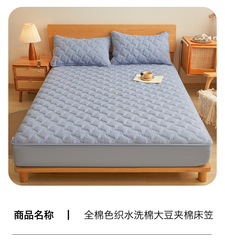 当前位置: 91家纺网 > 商品网购 > 床上用品 > 床笠 > 多谷家纺 2026新款纯棉全棉色织水洗棉大豆夹棉床笠三件套浅牛仔蓝