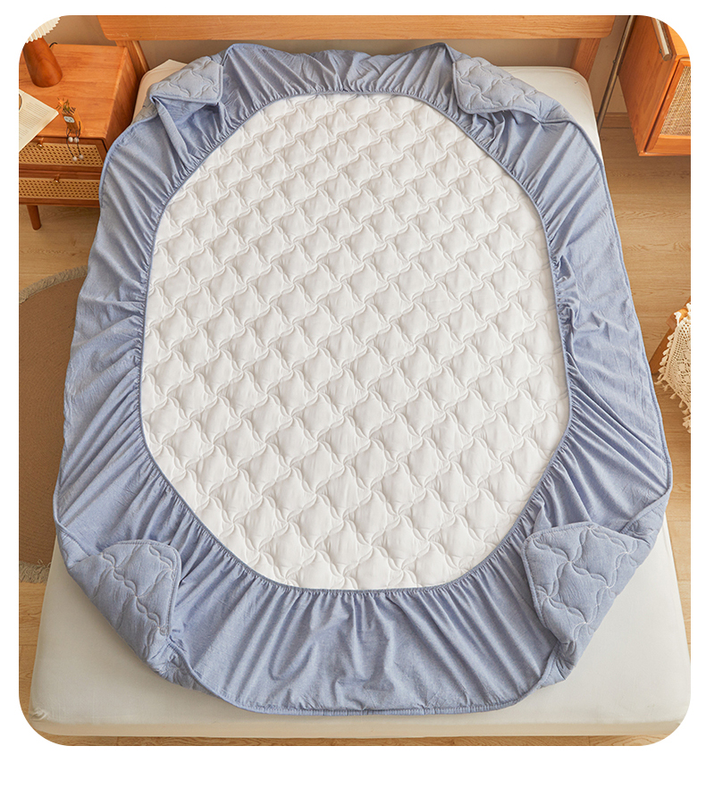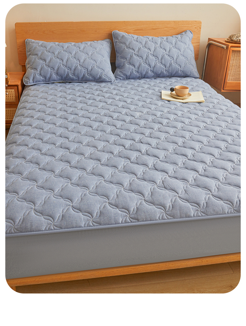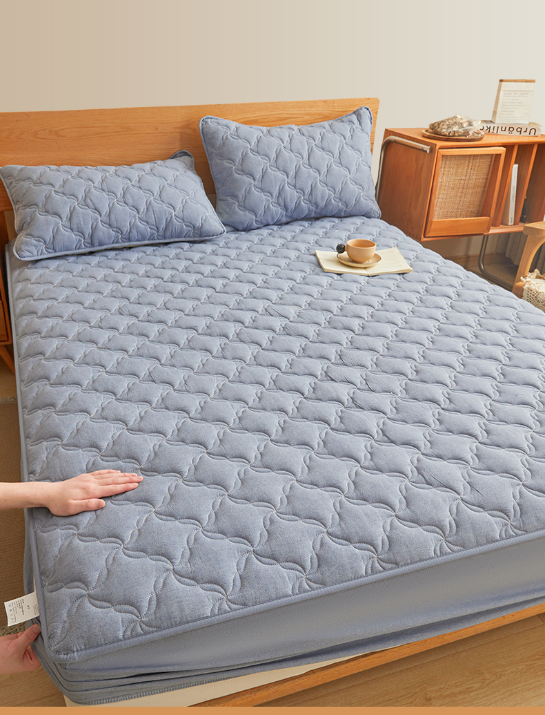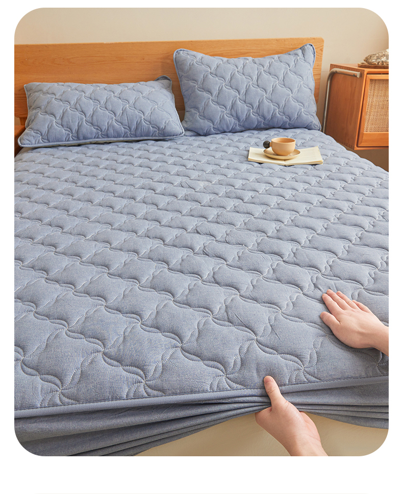 多谷家纺 2026新款纯棉全棉色织水洗棉大豆夹棉床笠三件套浅牛仔蓝