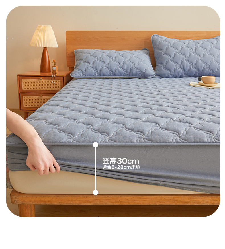 (总)多谷家纺 2024新款牛奶绒夹棉大豆床笠,灰色