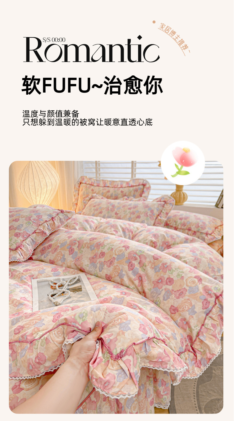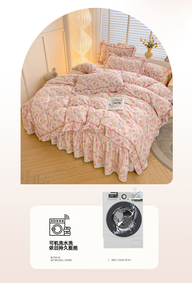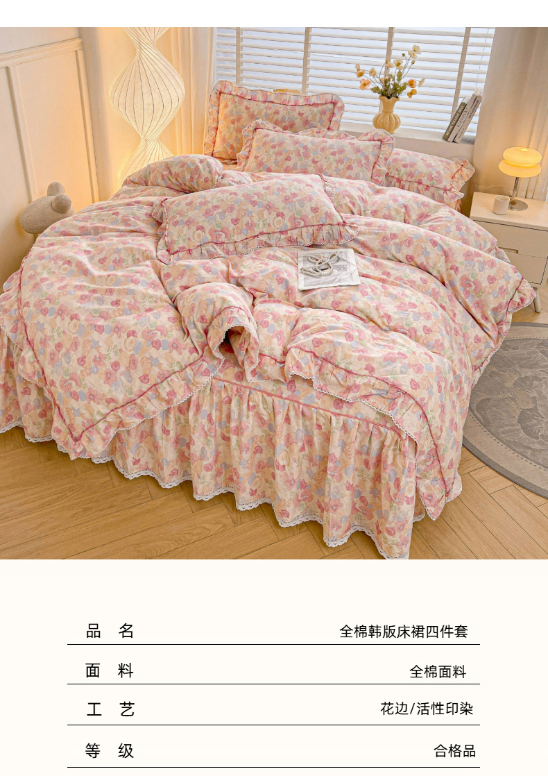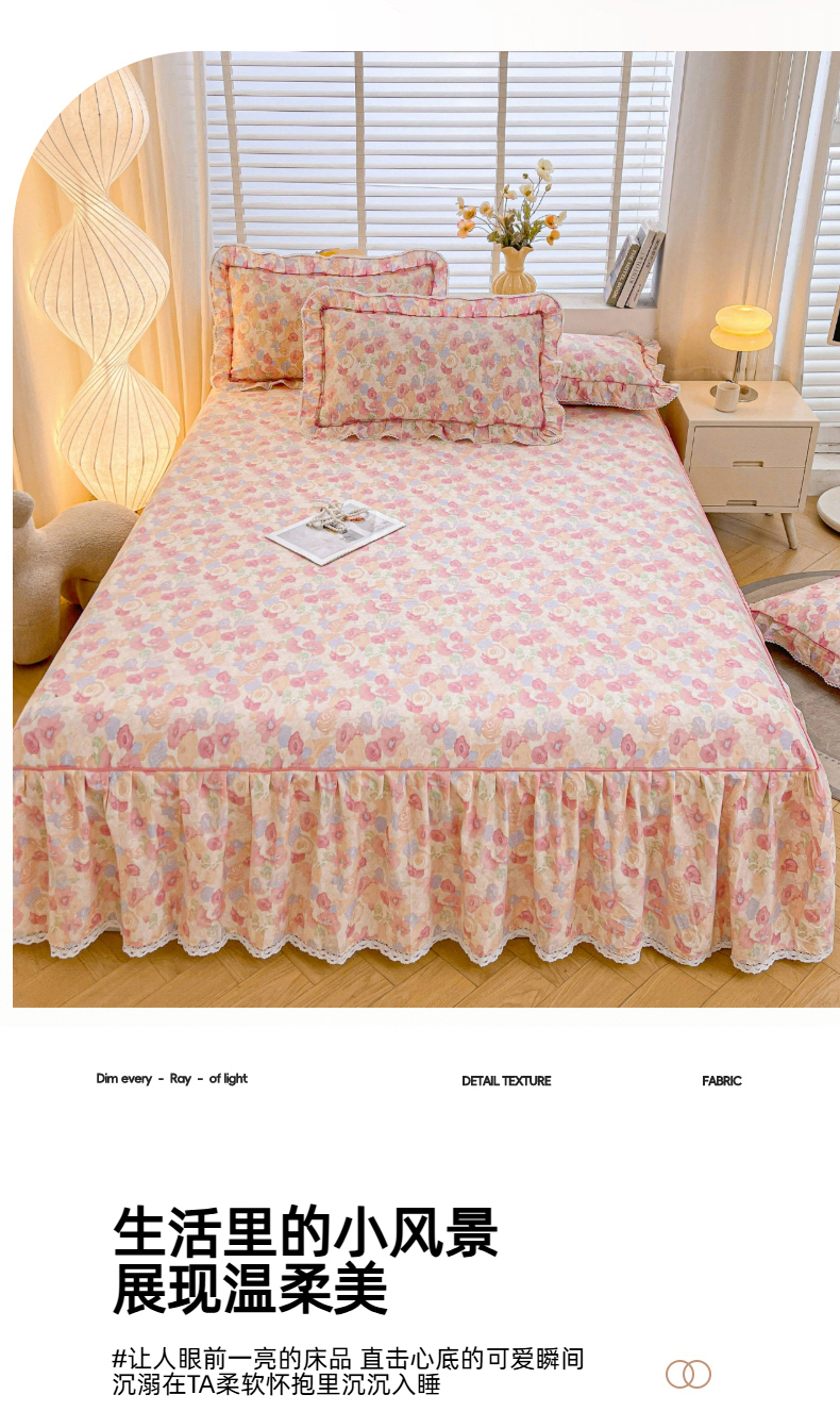 当前位置: 91家纺网 > 商品网购 > 床品套件 > 四件套 > 全棉普通四件套 > 缦彩 2025新款韩版公主风纯棉全棉床裙四件套 雾岛听风