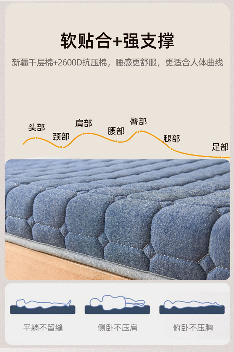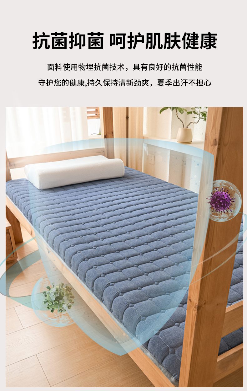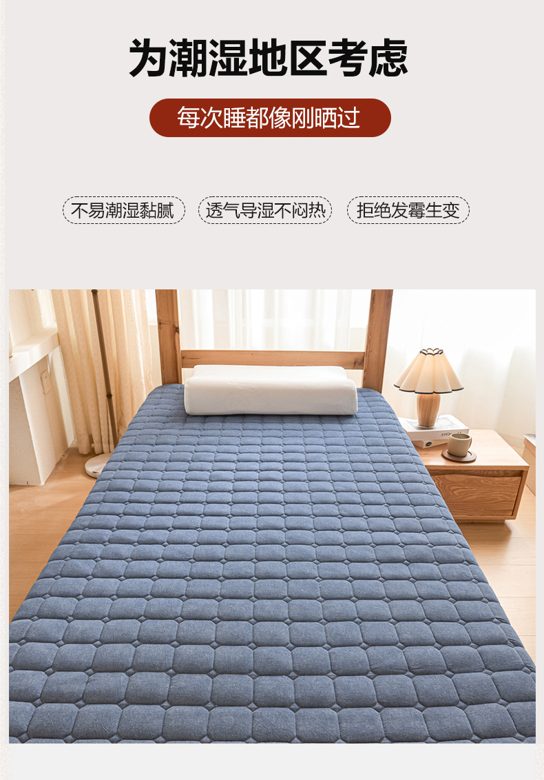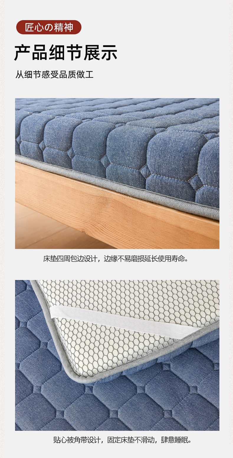 商品名称:暖季2025新款A类无印风学生款 棉花床垫深蓝
