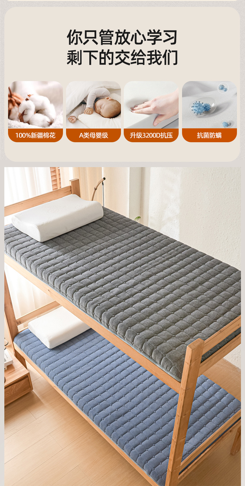 (总)暖季家纺 暖季家纺 2025新款立体三菱格海绵学生床垫,立体海绵灰-三棱格白,立体海绵蓝-三棱格白