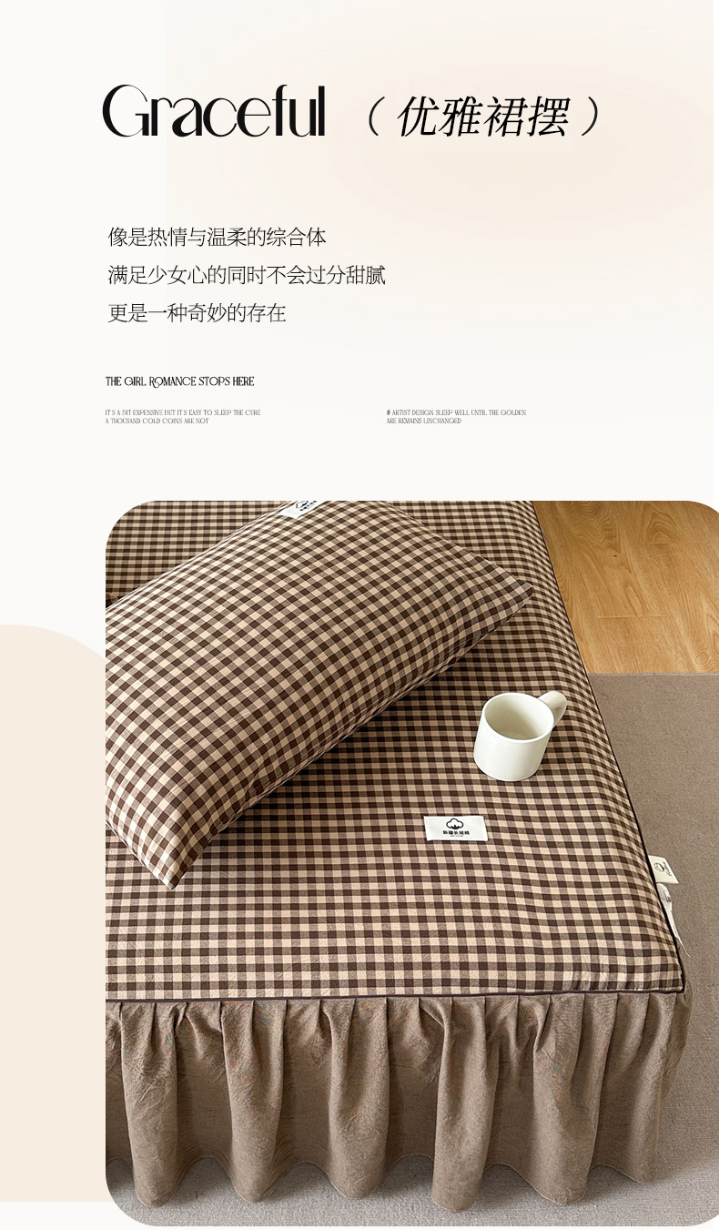 当前位置: 91家纺网 > 商品网购 > 床上用品 > 床笠 > 笠裙家纺2025新款色织全棉床裙床罩 水洗棉 芸素咖