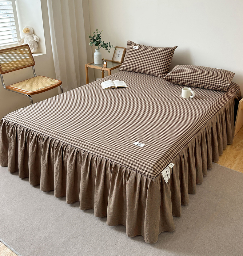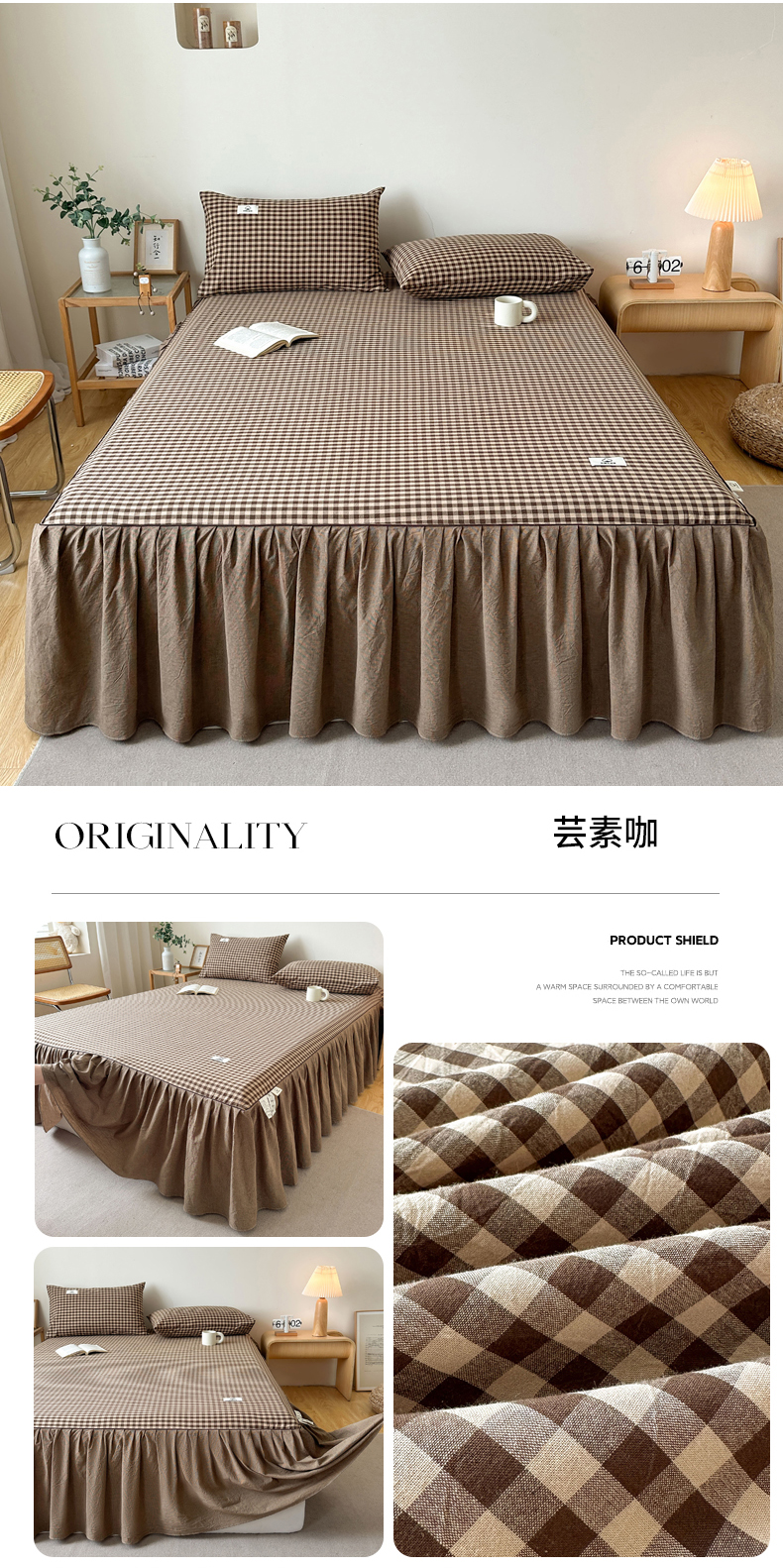 笠裙家纺2025新款色织全棉床裙床罩 水洗棉 芸素咖